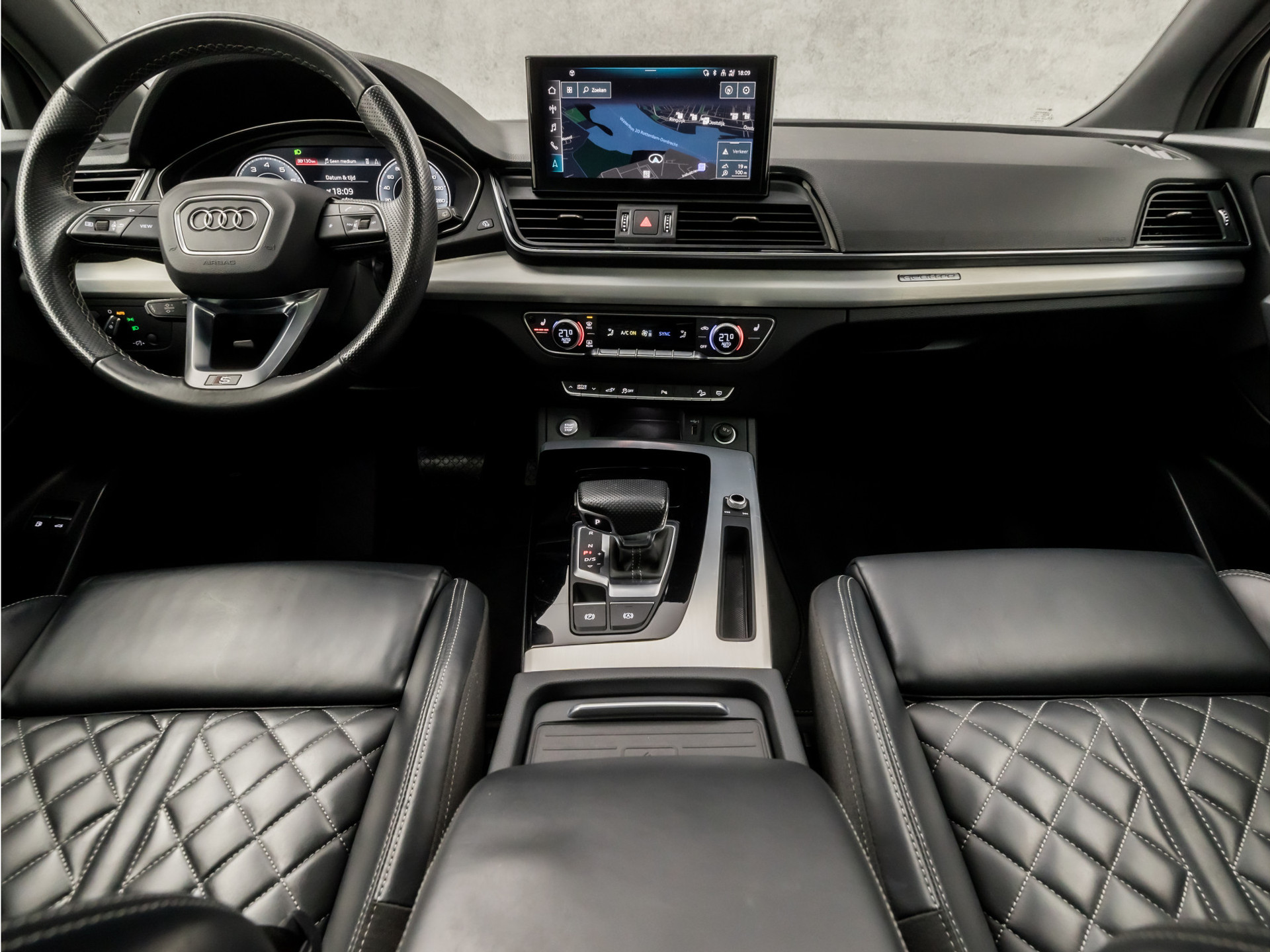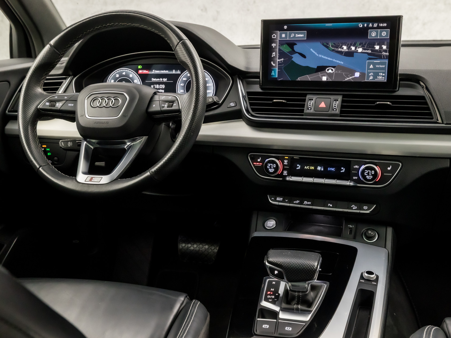 De nieuwste veiligheidssystemen komen in deze Audi Q5 samen. Onbedoeld buiten de rijstrook raken wordt voorkomen door het Lane-keeping systeem. Ook als uw aandacht even verslapt, blijft de forward collision warning bij de wekker. Dreigt er een botsing met een voor- of tegenligger, dan waarschuwt het systeem direct. Bovenop deze veiligheidsfeatures heeft deze Audi bovendien dodehoekdetectie, hill hold functie, brake assist en bandenspanningcontrolesysteem.