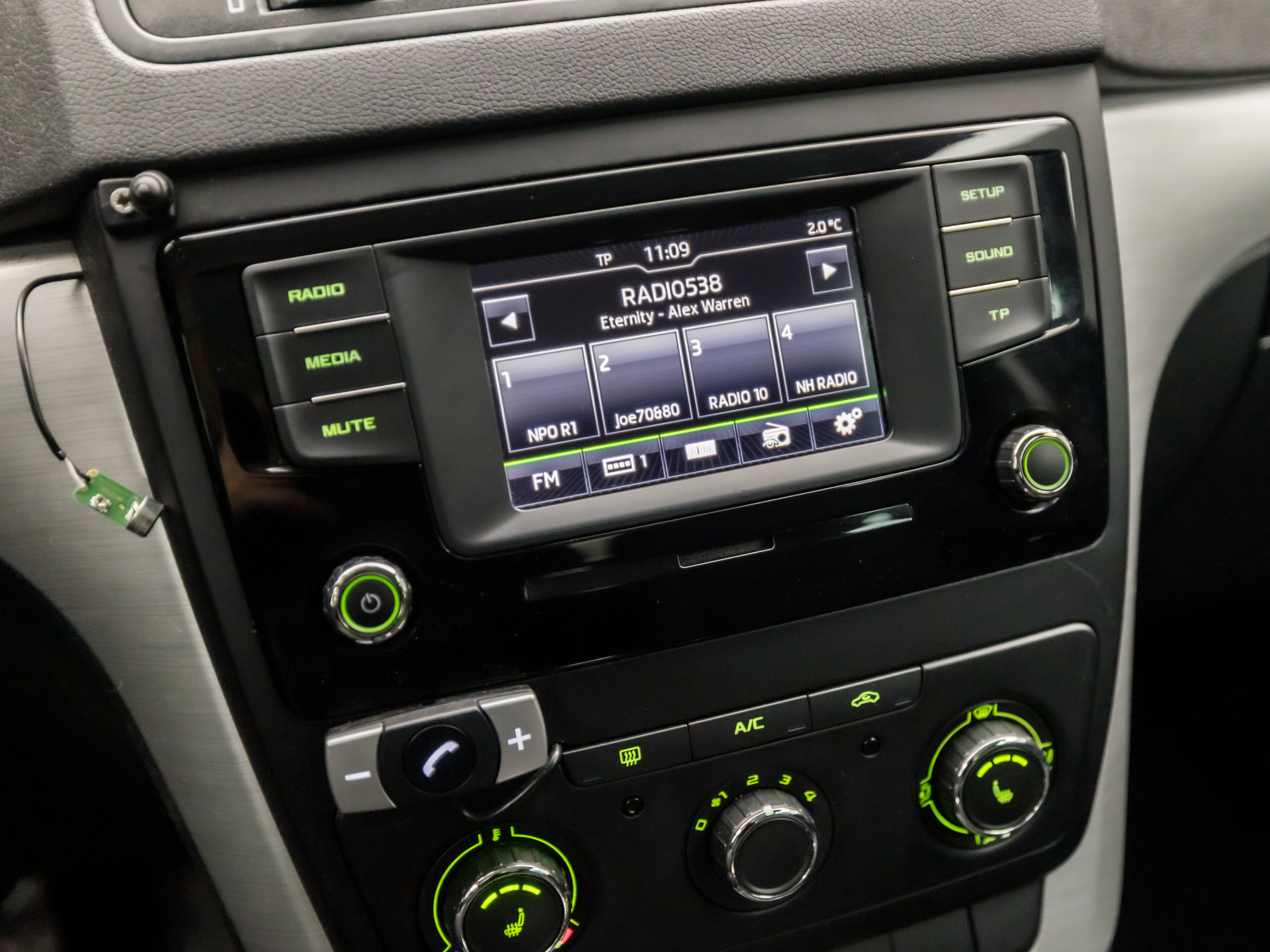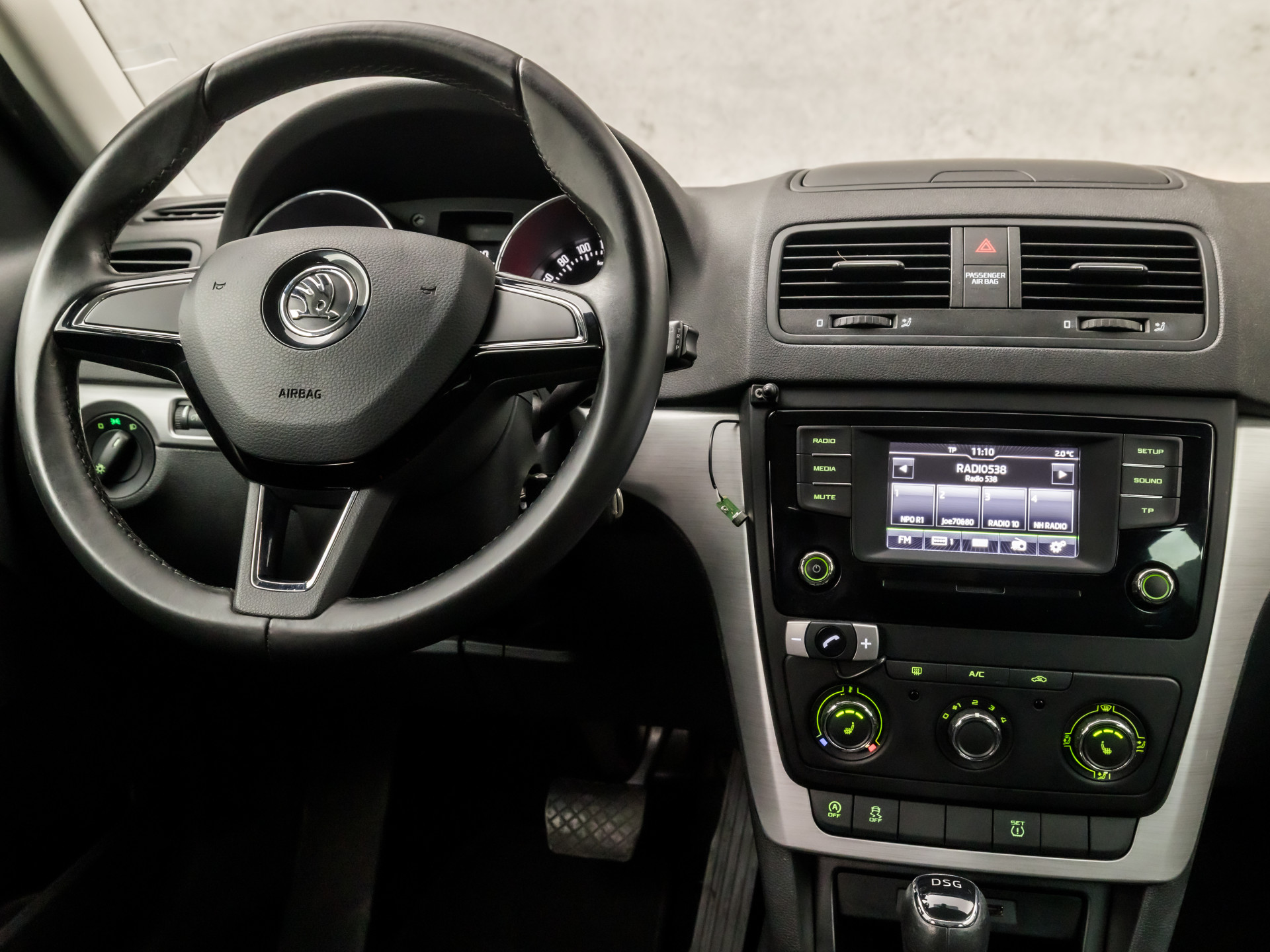 Onderweg kunt u veilig genieten van het audio-installatiesysteem. Want in deze ŠKODA bedient u het vanaf het stuurwiel. In een auto als deze kunt u niet zonder electronic climate control, zodat de temperatuur altijd goed is. Superstrak parkeren wordt een eitje dankzij de parkeersensoren. De regensensor is slim en alert, van de eerste spatjes tot een wolkbreuk. Altijd genoeg automatische wiscapaciteit. Met ingeschakelde cruise control zit u ontspannen achter het stuur. Ook automatisch dimmende binnenspiegel, lederen stuur, isofix-aansluiting, centrale deurvergrendeling met afstandsbediening, bagage afdekhoes en boordcomputer zijn aan boord.