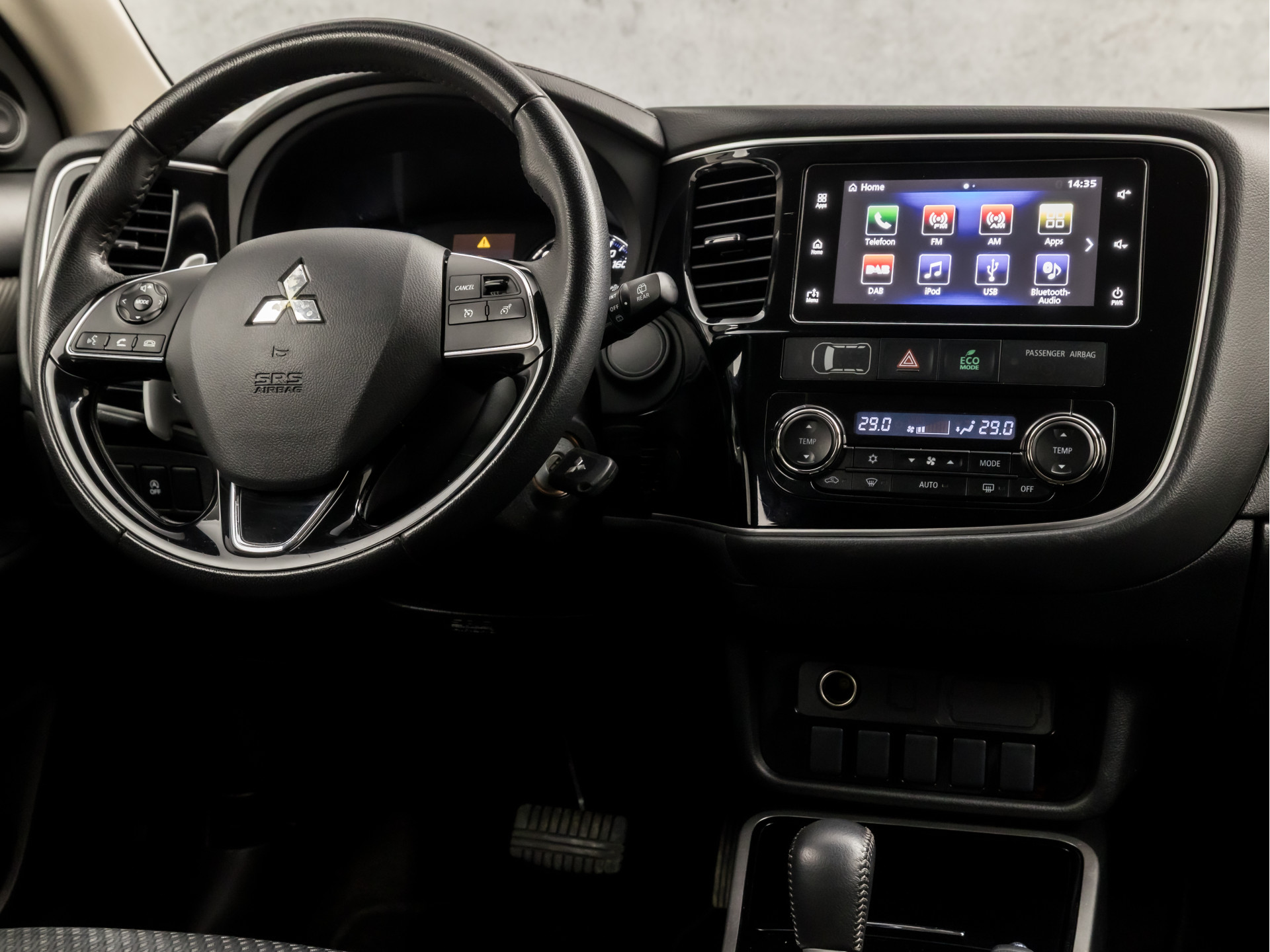 Afstand schatten bij het achteruitrijden? Niet nodig. U weet het precies, dankzij de achteruitrijcamera. Van A naar B zonder omwegen: altijd uw eigen navigatiesysteem aan boord! Natuurlijk is er ook automatische airconditioning aanwezig. Andere zender? Het geluid aanpassen? Dat kan allemaal moeiteloos door de audiobediening op het stuur. Met de DAB-ontvanger luistert u naar glasheldere digitale radio. Ook is de Mitsubishi uitgerust met: sportstuur met schakelpaddels, regensensor, cruise control, keyless entry, automatisch dimmende binnenspiegel en isofix-aansluiting.