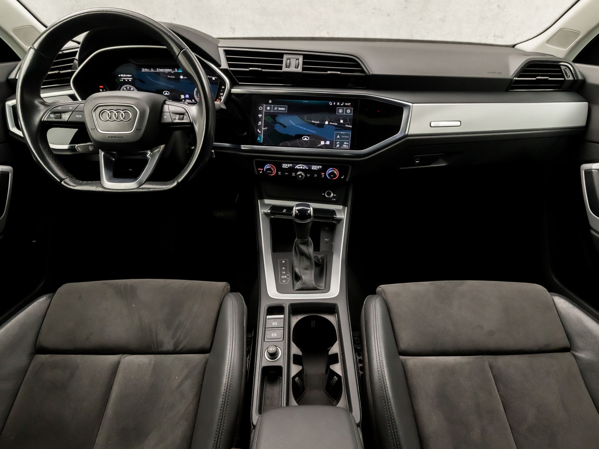 Zoals u mag verwachten van deze Audi Q3 is hij uitgerust met een reeks aan actieve veiligheidssystemen. Ongemerkt buiten de rijstrook raken? Nee hoor, het Lane-keeping systeem waarschuwt en corrigeert. Forward collision warning waarschuwt bij een dreigende aanrijding met een voorligger. De auto is ook uitgerust met hill hold functie, autonoom remsysteem en bandenspanningcontrolesysteem.