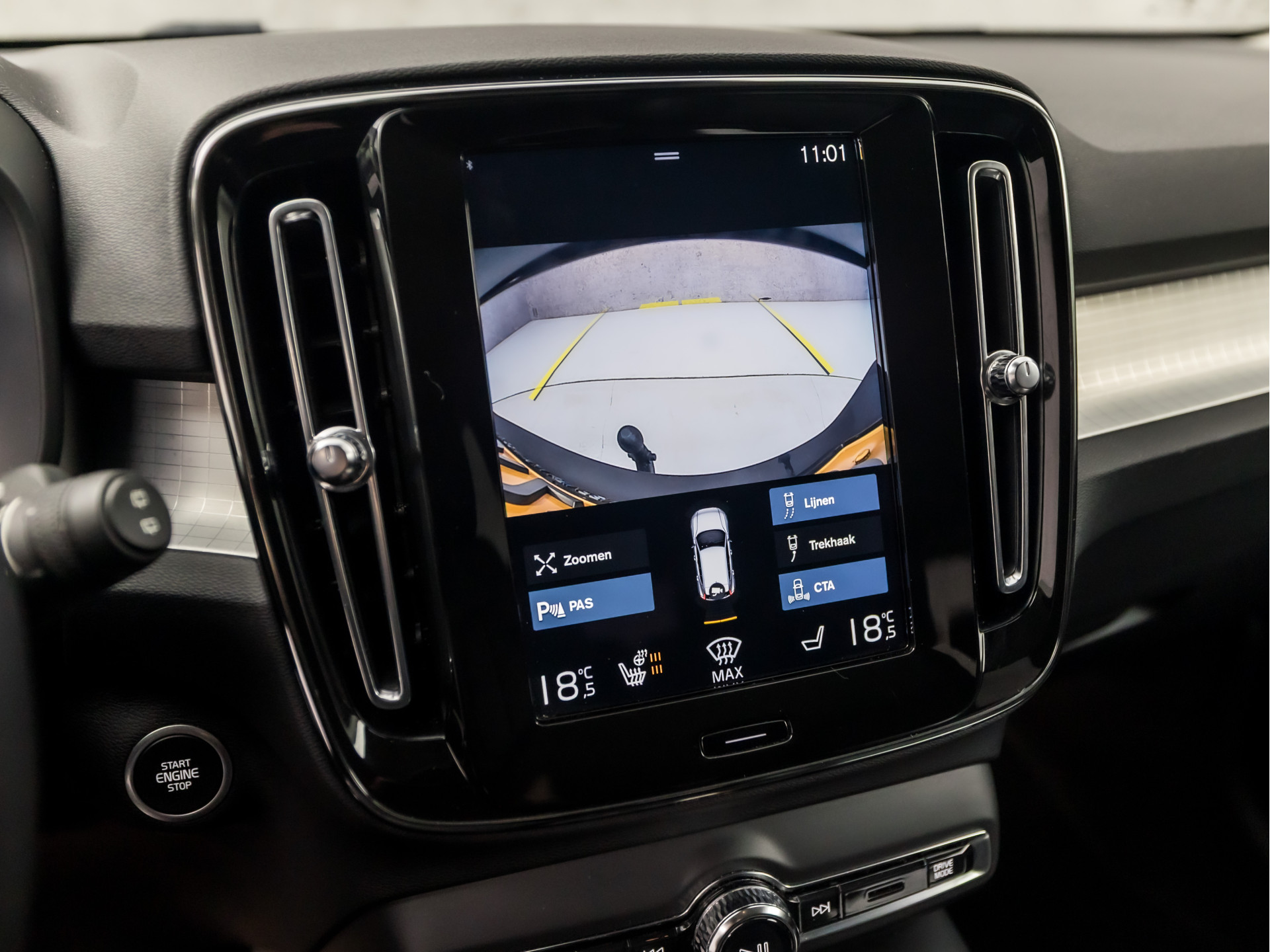 De standkachel is een comfortfunctie die de veiligheid vergroot. U rijdt nooit meer met bevroren of beslagen ramen en stapt altijd in een voorverwarmd interieur. Het personaliseren van uw cockpitinterface is mogelijk met het digitale dashboard in deze auto. De vier camera's die samen de 360 graden camera vormen, bieden u de mogelijkheid om obstakels in elke richting te zien. Adaptive cruise control is veilig en comfortabel. De snelheidsregelaar houdt automatisch afstand tot het voertuig dat voor u rijdt. Rijden-stilstaan, rijden-stilstaan. Niks is irritanter en vermoeiender dan filerijden. Daar heeft deze Volvo XC40 een oplossing voor: de file assistent, die met radarmeting permanent het tempo aanpast op de voorligger. Zelfs als die stopt. Met dashboard met spraakbediening, inklapbare trekhaak, connected drive services, high performance audiosysteem, full map navigatiesysteem en WIFI-hotspot is deze Volvo helemaal compleet.