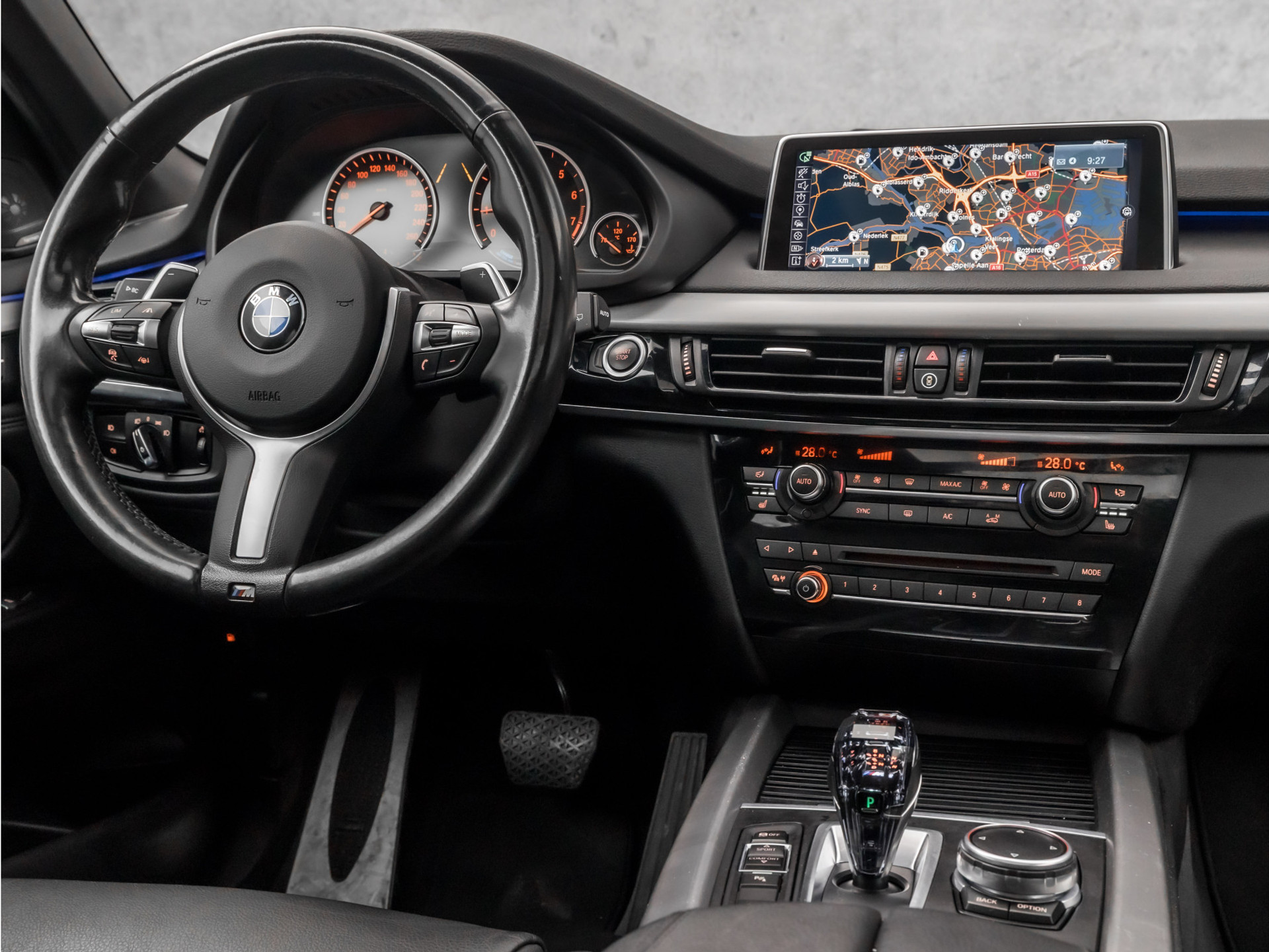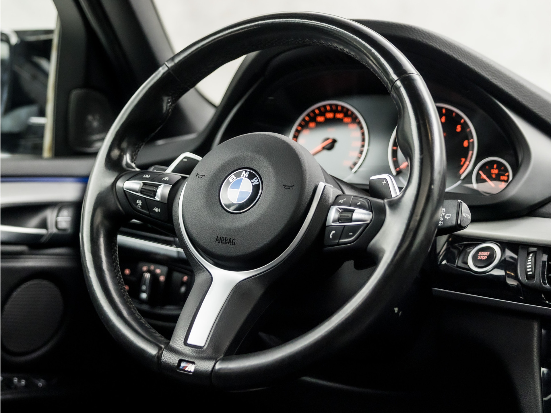 Voor deze BMW X5 moet u snel zijn, want die gaat aandacht krijgen. Net binnen, maar daar blijft-ie niet lang! In deze auto vindt u een benzinemotor en een automatische transmissie. Niets geeft meer gevoel van luxe en comfort dan een lederen interieur. Ook dat is hier meegeleverd Neem plaats op de comfortabele stoelen. Dankzij de elektrische bediening en het geheugen is het eenvoudig om hierin de beste zitpositie te vinden. Zelfs als het buiten ijzig koud is, kunnen zowel de bestuurder als de passagiers op de achterbank snel opwarmen, dankzij de verwarmbare stuurwiel en de achterbankverwarming. Voor extra lichtinval en een frisse luchtstroom zorgt het elektrisch bediende panoramadak. De elektrische achterklep opent met een druk op de knop, zodat u gemakkelijk toegang heeft tot de bagageruimte. Met de krachtige xenonverlichting rijdt u ontspannen in het donker. U wordt in deze auto ook getrakteerd op 19 inch lichtmetalen velgen, LED koplampen, BMW M-sportpakket, adaptief dempingsysteem, zwarte hemelbekleding en donker getint glas achter.