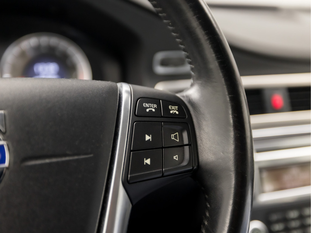 Waarheen gaat de reis? Het navigatiesysteem brengt u trefzeker ter plekke! Tot de standaard uitrusting van deze auto hoort ook automatische airconditioning. Andere zender, andere muziek, meer volume? Met de audiobediening op het stuur is het makkelijk en veilig geregeld. De parkeersensoren vertellen precies hoe ver u kunt gaan. Hoe dichter op een obstakel, hoe sneller de piepjes. De regensensor regelt zelf de optimale snelheid van de ruitenwissers zodat u dat niet zelf hoeft te doen. U bent in deze Volvo ook voorzien van cruise control, automatisch dimmende binnenspiegel, lederen stuur, isofix-aansluiting, centrale deurvergrendeling met afstandsbediening en boordcomputer.