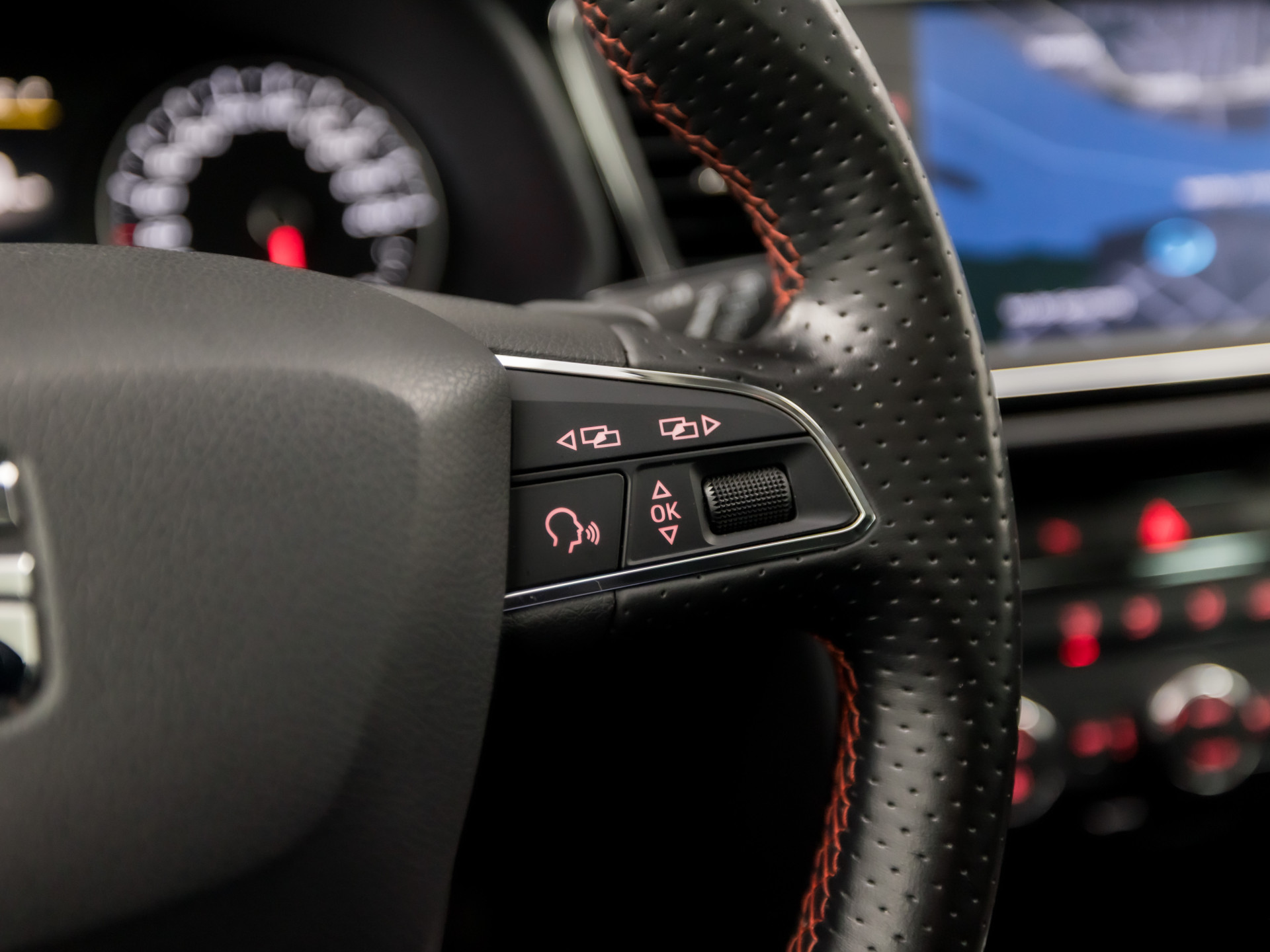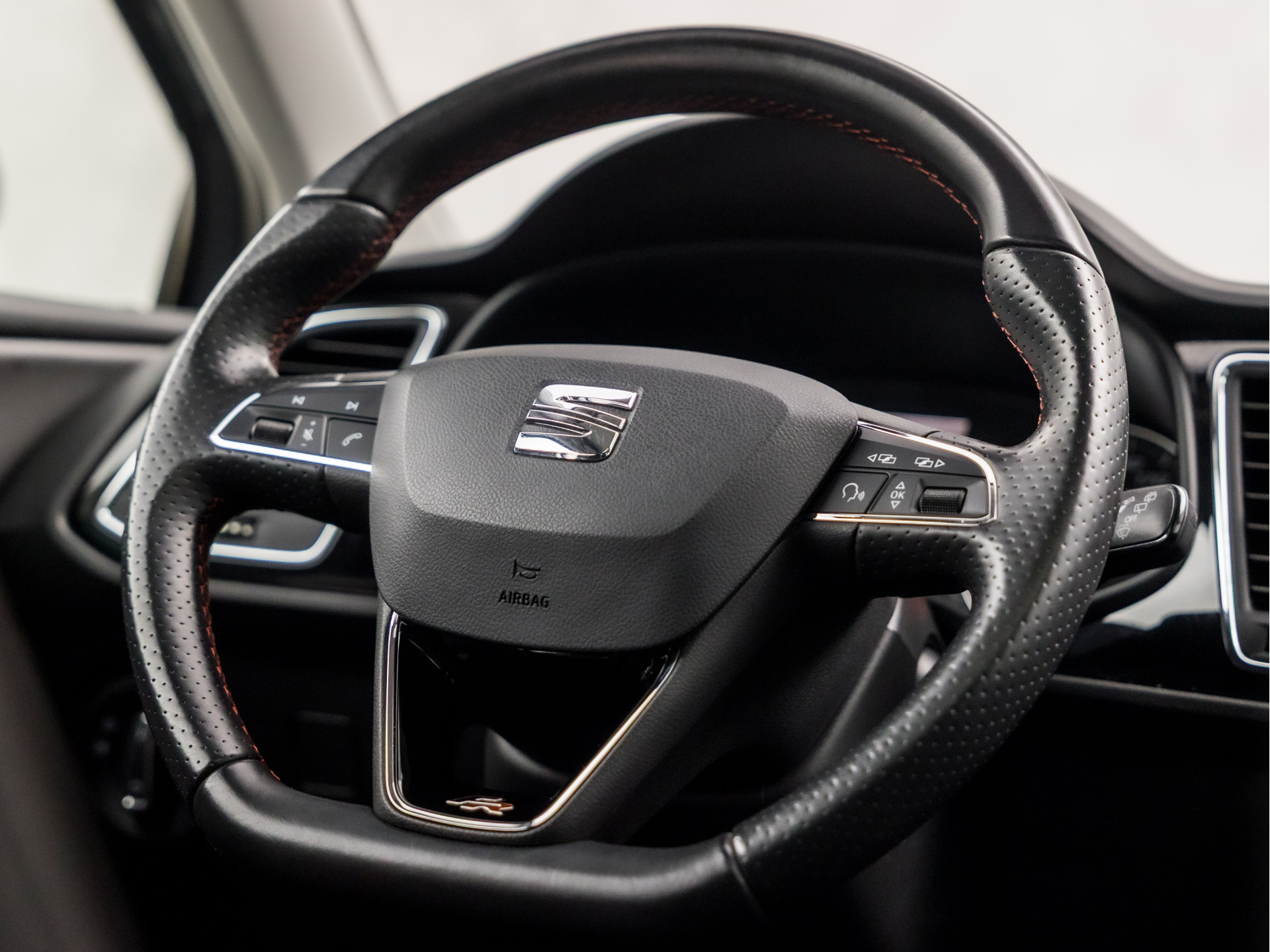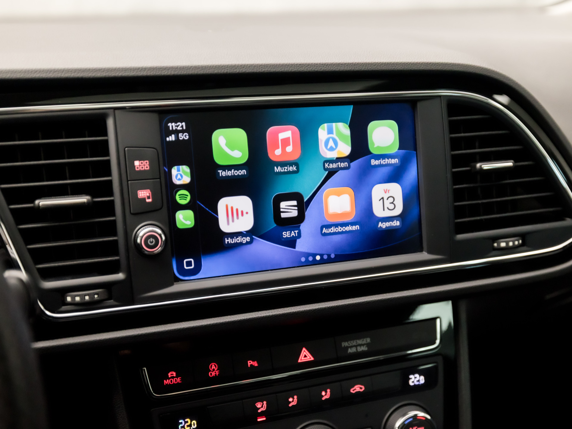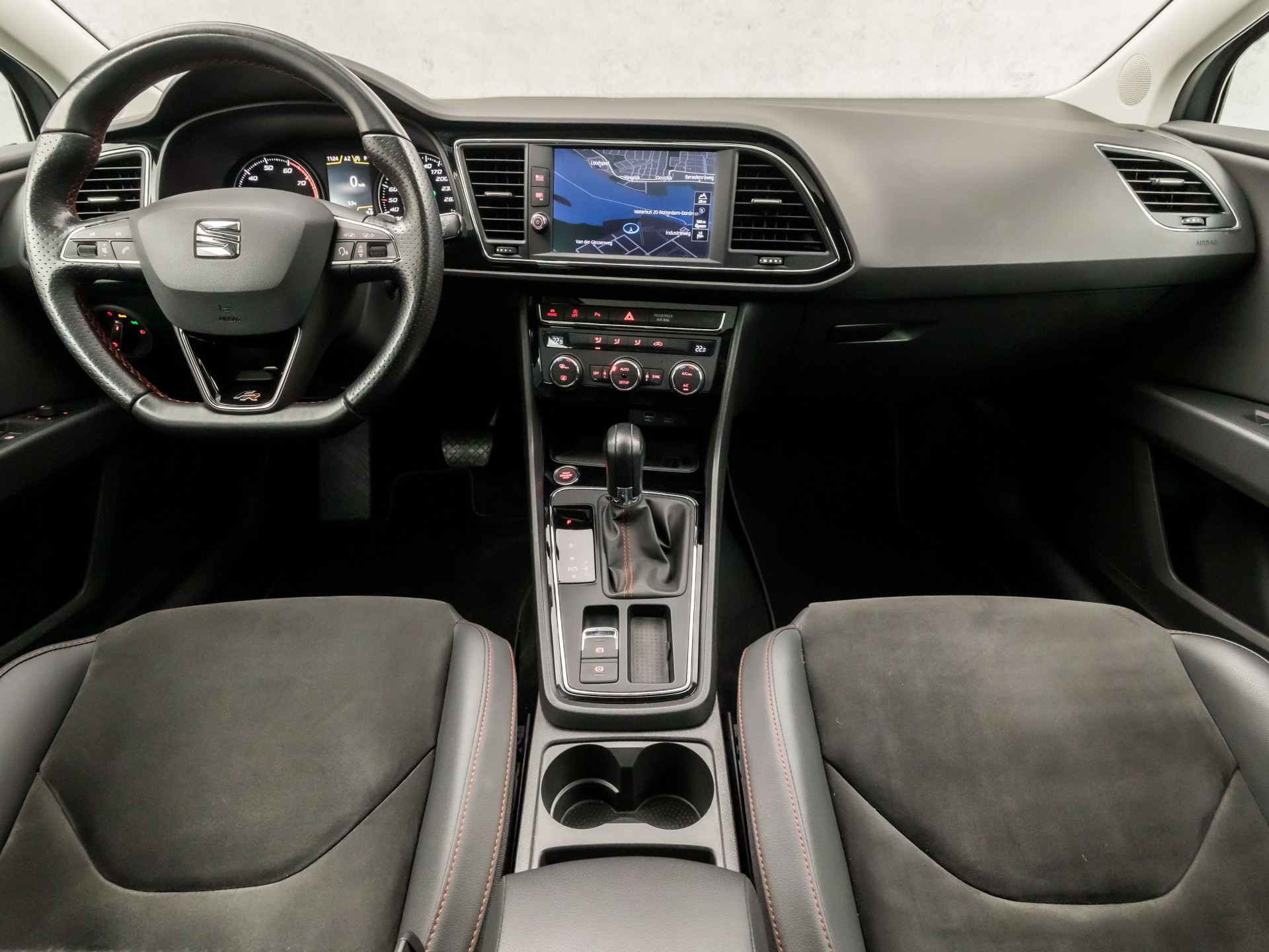 Hoeveel ruimte heeft u nog bij het inparkeren? De achteruitrijcamera brengt helder in beeld wat zich achter de auto bevindt en geeft een geluidssignaal. Uw smartphone wordt een dashboard, met alle functies in beeld. Dankzij Connected Services en de speciale app. Deze SEAT is voorzien van spraakbediening voor het navigatiesysteem en voor het audio-installatiesysteem met DAB-ontvangst. Maar u kunt ook de knoppen op het stuur gebruiken. Onderweg laadt u uw smartphone snoerloos op met behulp van de draadloze oplaadmogelijkheid voor telefoons. Nooit meer te warm of te koud. De automatische airconditioning zorgt altijd voor de temperatuur die u kiest. En deze auto heeft ook regensensor, cruise control, keyless entry, automatisch dimmende binnenspiegel, isofix-aansluiting en centrale deurvergrendeling met afstandsbediening als standaard uitrusting.