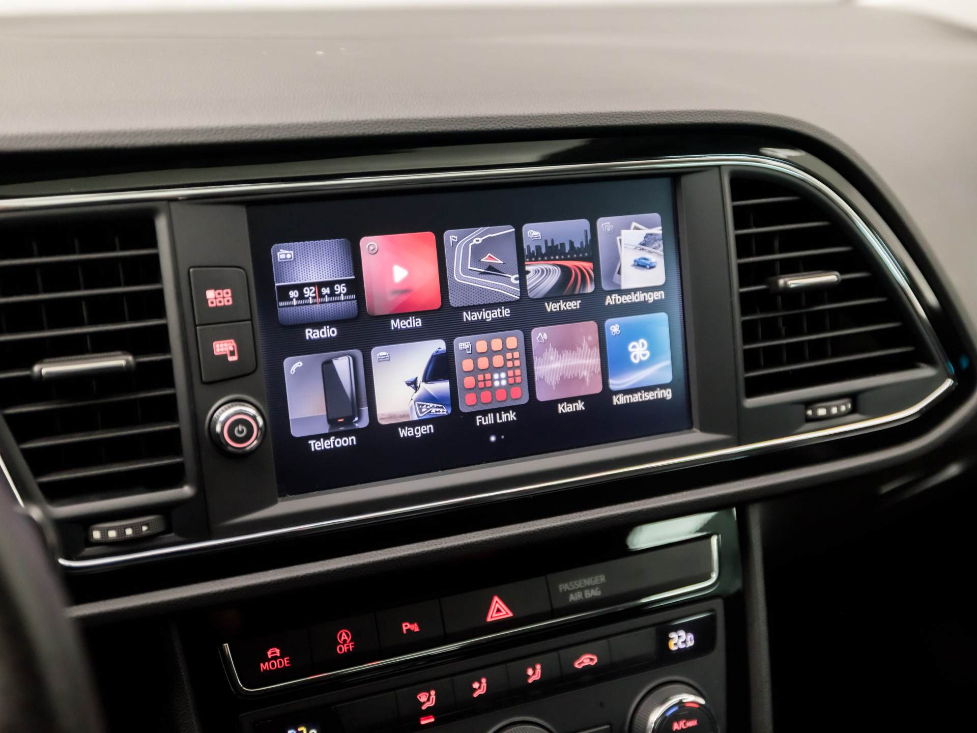 Hoeveel ruimte heeft u nog bij het inparkeren? De achteruitrijcamera brengt helder in beeld wat zich achter de auto bevindt en geeft een geluidssignaal. Uw smartphone wordt een dashboard, met alle functies in beeld. Dankzij Connected Services en de speciale app. Deze SEAT is voorzien van spraakbediening voor het navigatiesysteem en voor het audio-installatiesysteem met DAB-ontvangst. Maar u kunt ook de knoppen op het stuur gebruiken. Onderweg laadt u uw smartphone snoerloos op met behulp van de draadloze oplaadmogelijkheid voor telefoons. Nooit meer te warm of te koud. De automatische airconditioning zorgt altijd voor de temperatuur die u kiest. En deze auto heeft ook regensensor, cruise control, keyless entry, automatisch dimmende binnenspiegel, isofix-aansluiting en centrale deurvergrendeling met afstandsbediening als standaard uitrusting.