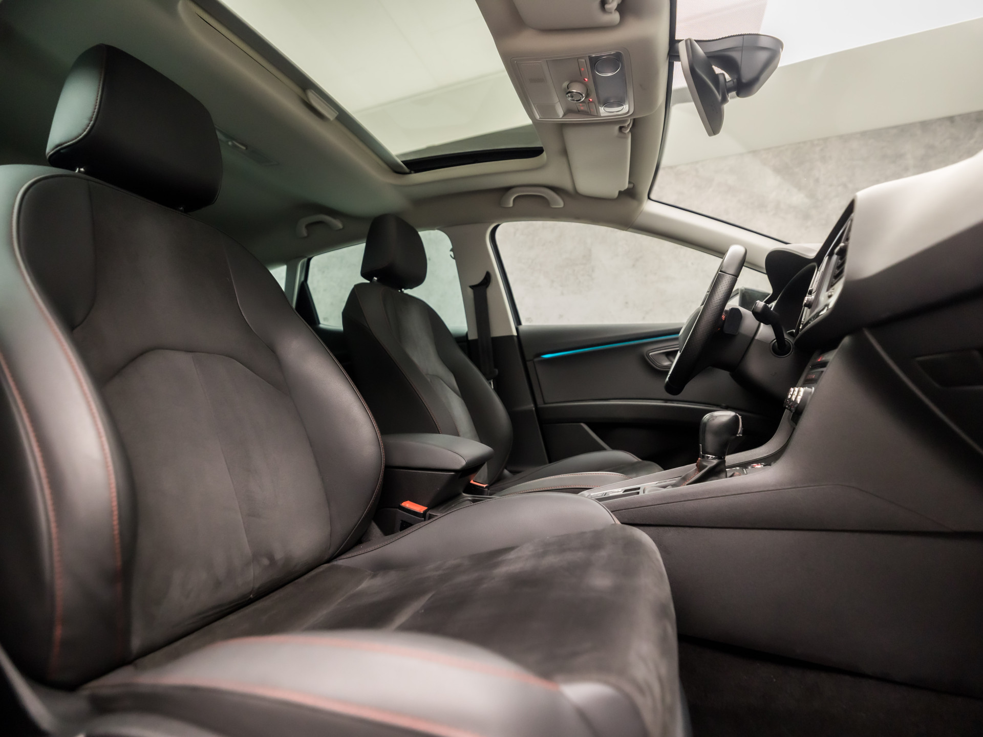 Omdat rijden een plezier mag zijn, staat deze SEAT Leon enthousiast te glimmen in de showroom. Technisch in topconditie, strak in de lak... echt een droomauto! In deze auto vindt u een benzinemotor en een automatische transmissie. Het interieur ademt luxe door de leren bekleding. Deze SEAT Leon heeft verwarmbare voorstoelen, voor zowel bestuurder als bijrijder. De sportstoelen zorgen ervoor dat u goed en comfortabel zit, ook als het gas erop gaat. Licht, luxe en gemak komen samen in de vorm van het elektrische bediende glazen panoramadak. Ook in winterse omstandigheden is rijden een plezier, niet in de laatste plaats dankzij het verwarmd stuurwiel. Xenonverlichting zorgt voor een heldere witblauwe lichtkleur en een scherp lichtbeeld. Bij de zeer complete uitrusting van deze auto behoren ook 18 inch lichtmetalen velgen, LED koplampen, sportonderstel, dakspoiler, donker getint glas achter en in delen neerklapbare achterbank.
