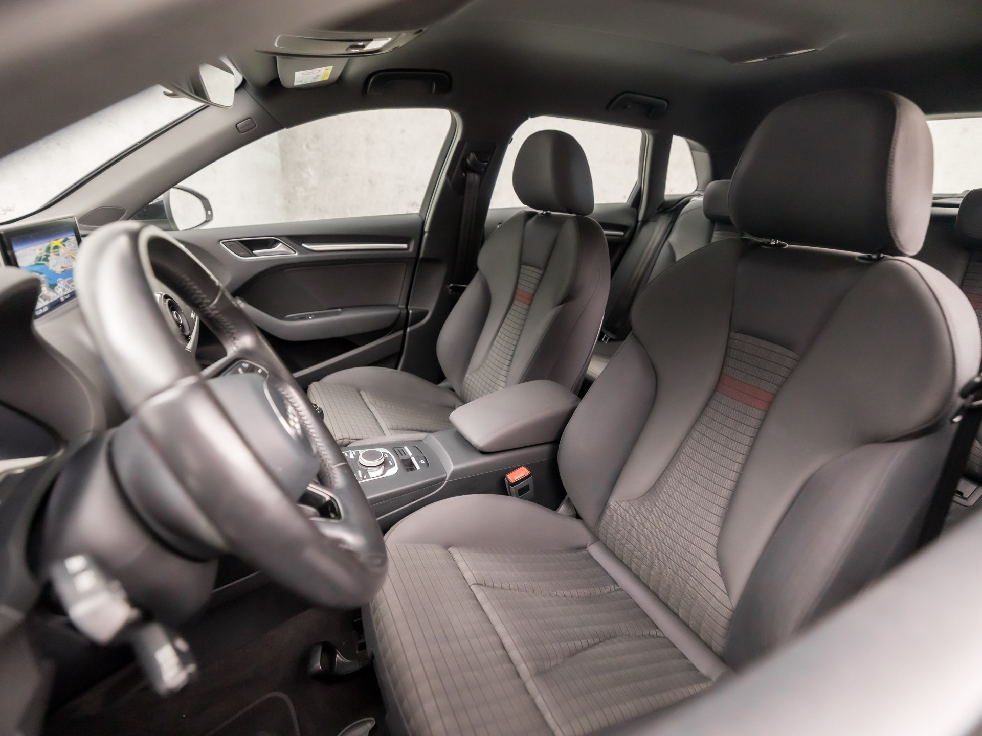 Adaptive cruise control is een comfortabele en veilige optie. Het systeem reguleert de snelheid en houdt automatisch afstand tot uw voorligger. Het audio-installatiesysteem en het navigatiesysteem met harde schijf bedient u veilig met knoppen op het stuur. Automatische airconditioning verwarmt of koelt het interieur met een druk op de knop. Een plekje vinden in de binnenstad is één, inparkeren is twee. Voor dat laatste heeft deze Audi A3 Sportback prima parkeersensoren die u een handje helpen. En deze auto heeft ook lederen sportstuur, automatisch dimmende binnenspiegel, isofix-aansluiting, centrale deurvergrendeling met afstandsbediening, boordcomputer en lederen versnellingspook als standaard uitrusting.