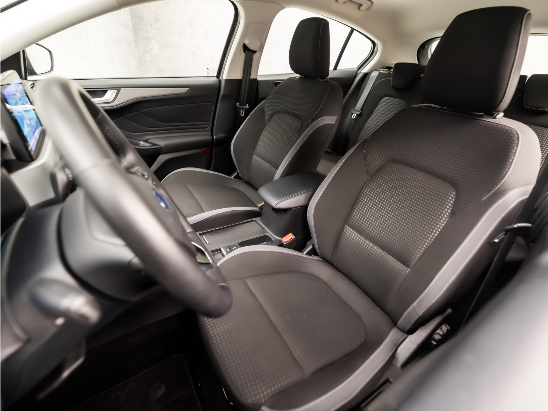 De Ford Focus is uw trouwe partner onderweg, want hij houdt continu voor u de situatie op en om de weg in de gaten. Volautomatische veiligheidssystemen kunnen daarbij ingrijpen om u voor gevaarlijke situaties te behoeden. Een camera houdt de juiste koers binnen de rijstrook in de gaten en het Lane-keeping systeem corrigeert bij afwijkingen. Forward collision warning waarschuwt voor een kop-staart botsing. Ook helpen het hill hold functie, brake assist en bandenspanningcontrolesysteem, uw rit tot een veilige rit te maken.