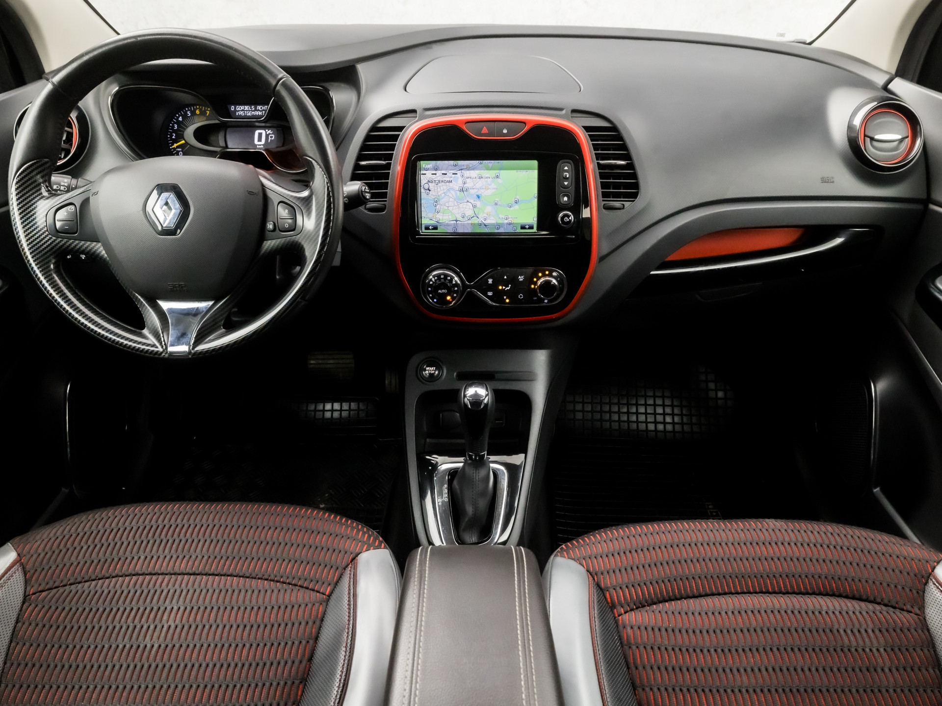 Kommaar-kommaar-kommaar, aldus de achteruitrijcamera. Iedere centimeter vrije ruimte komt haarscherp in beeld. Schadevrij inparkeren maar! In deze Captur vindt u niet alleen schakelaars op het stuur om het navigatiesysteem te bedienen en het audio-installatiesysteem met DAB-ontvangst, maar er is ook spraakbediening. Automatische airconditioning regelt volautomatisch de temperatuur. U kiest de gewenste temperatuur en het systeem doet de rest. Het drukke verkeer eist onderweg al uw aandacht op. Daarom is het goed dat deze Renault is voorzien van diverse systemen die u assisteren tijdens de rit. Een automatisch inschakelbare verlichting neemt het waar als het donker wordt of gaat schemeren, en schakelt dan automatisch de verlichting in. Op dezelfde manier "ziet" de regensensor de eerste spatjes regen en schakelt dan de ruitenwissers in, en als het harder gaat regenen zet hij de ruitenwissers ook in een snellere stand. Cruise control houdt automatisch de ingestelde snelheid vast. Zo kunt u zich volledig op het verkeer concentreren. Met keyless entry, lederen stuur en versnellingspook, isofix-aansluiting, centrale deurvergrendeling met afstandsbediening, boordcomputer en lederen versnellingspook is deze Renault helemaal compleet.