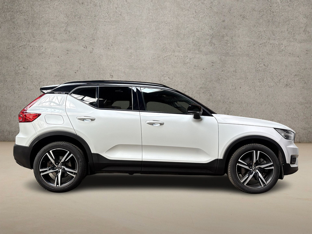 Van uw nieuwe auto verlangt u rijplezier, maar ook optimaal comfort en veiligheid. Daarom is de Volvo XC40 de auto die u zoekt. Goed voor het milieu, goed voor de portemonnee: hybride rijden biedt het beste van beide! Het gevoel van luxe is inbegrepen dankzij het lederen interieur. Doe maar luxe! Neem plaats in de verwarmbare voorstoelen en voel de weldaad in koude dagen. Nooit meer stramme spieren bij het uitstappen: daar zorgen de comfortstoelen voor! De elektrische achterklep opent met een druk op de knop, zodat u gemakkelijk toegang heeft tot de bagageruimte. Het glazen panoramadak geeft ook doordeweeks een vakantiegevoel. Wat een licht en zicht! Koude handen? Da's voorbij met het verwarmd stuurwiel. Pak aan! Natuurlijk behoren 19 inch lichtmetalen velgen, LED koplampen, zwarte hemelbekleding, in delen neerklapbare achterbank, LED-achterlichten en bestuurdersstoel met lendensteunverstelling ook tot de uitrusting van deze complete auto.