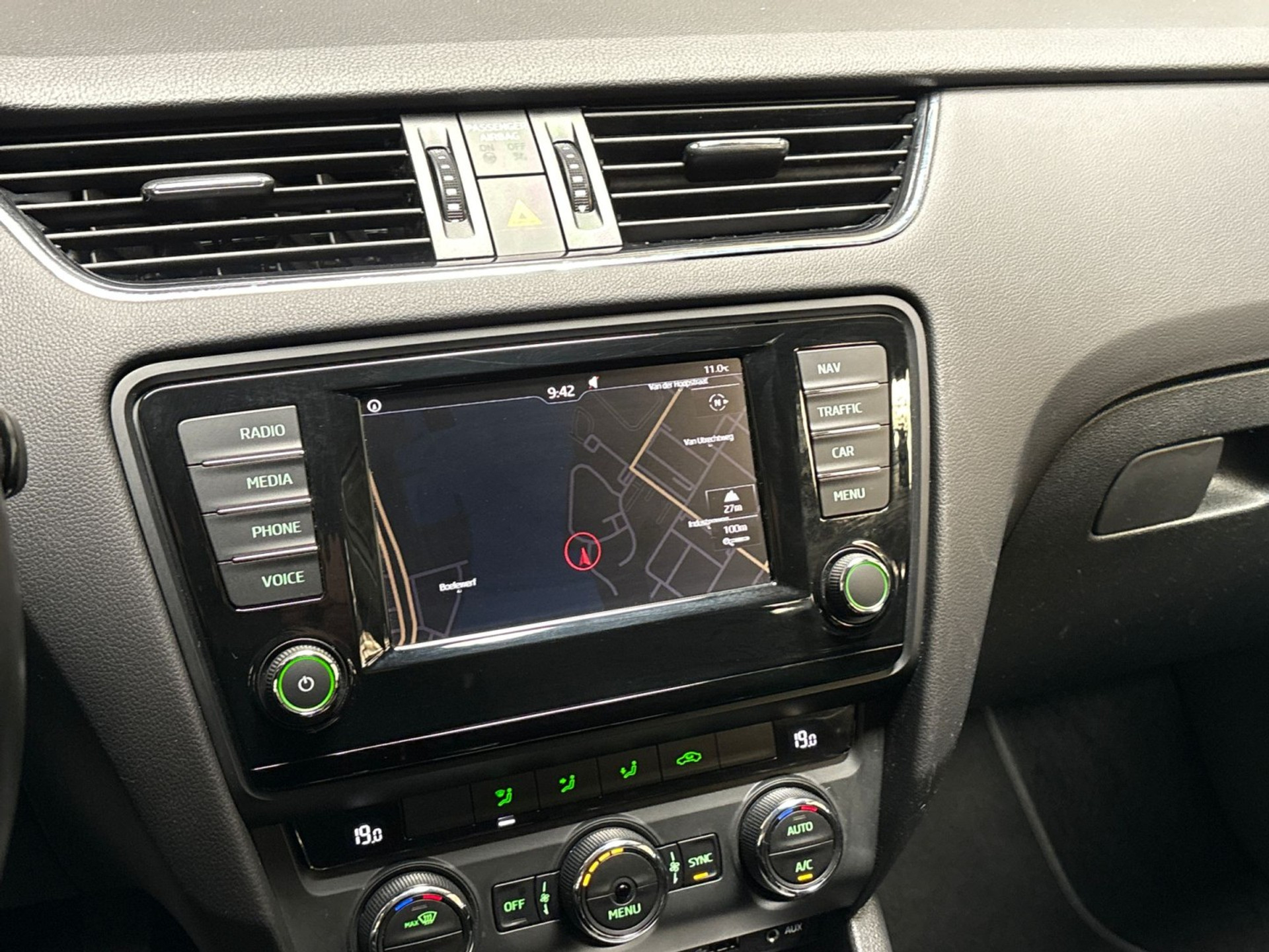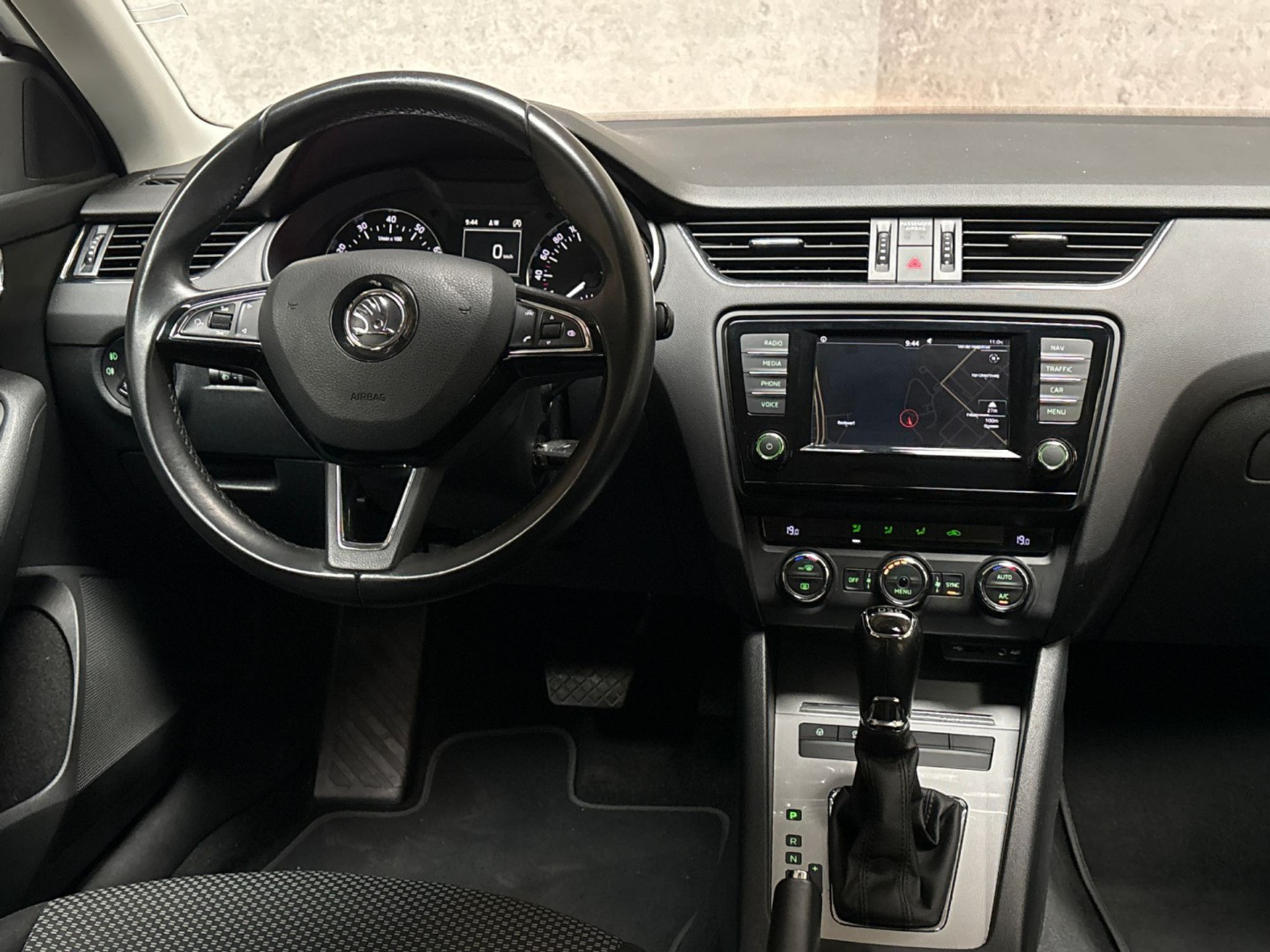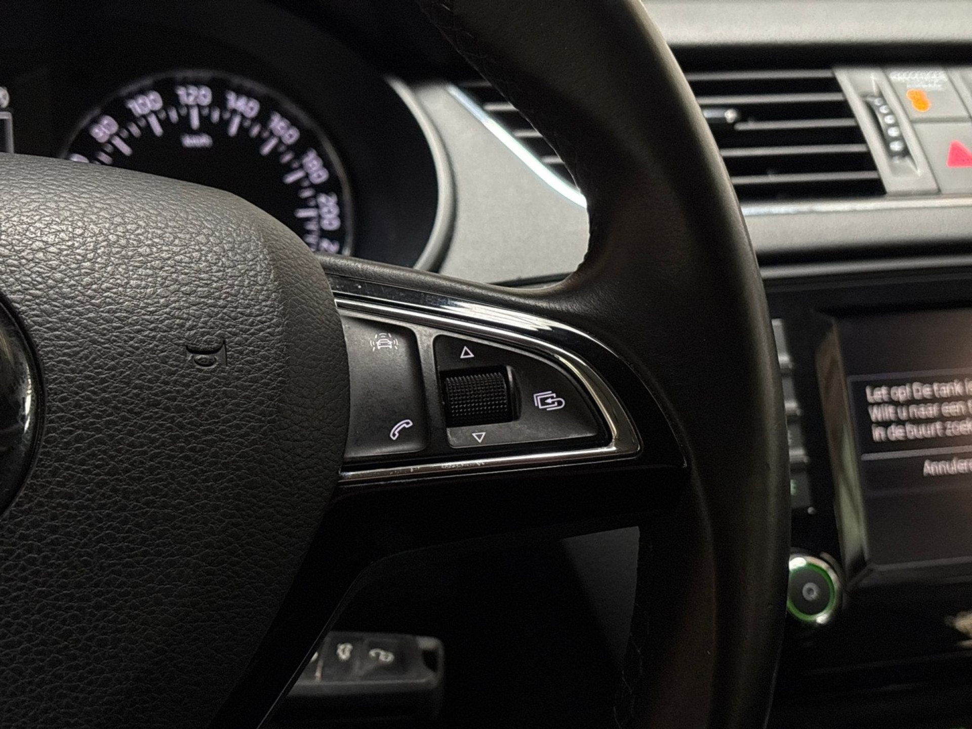U weet altijd waar u moet zijn, dankzij het navigatiesysteem met harde schijf. Het spreekt voor zich dat een auto als deze ook van automatische airconditioning is voorzien. Harder, zachter, aan, uit, volgende track, nieuwe zender... alle audiofuncties zijn regelbaar via de audiobediening op het stuur. Soms heeft u meer parkeerruimte dan u denkt. Maar soms ook niet. De parkeersensoren vertellen precies hoeveel. Het drukke verkeer eist onderweg al uw aandacht op. Daarom is het goed dat deze Škoda is voorzien van diverse systemen die u assisteren tijdens de rit. Een automatisch inschakelbare verlichting neemt het waar als het donker wordt of gaat schemeren, en schakelt dan automatisch de verlichting in. Op dezelfde manier "ziet" de regensensor de eerste spatjes regen en schakelt dan de ruitenwissers in, en als het harder gaat regenen zet hij de ruitenwissers ook in een snellere stand. Met cruise control, automatisch dimmende buitenspiegels, lederen stuur, usb-aansluiting, centrale deurvergrendeling met afstandsbediening en boordcomputer is deze auto helemaal compleet.