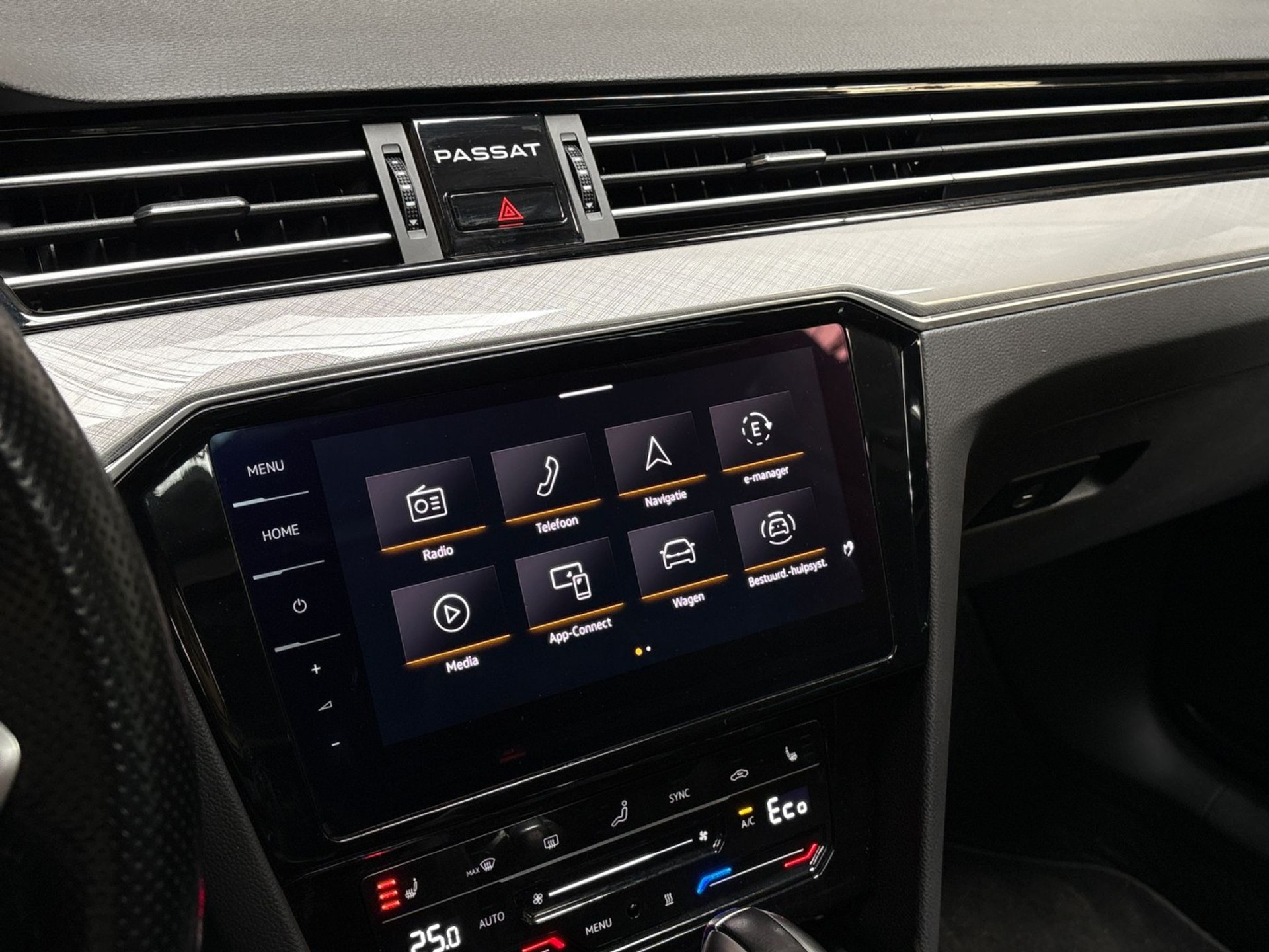 Zoals u mag verwachten van deze Volkswagen Passat Variant is hij uitgerust met een reeks aan actieve veiligheidssystemen. Onderweg fungeert de verkeersbord-detectie als het ware als uw bijrijder en attendeert u op de verkeersborden langs de weg. Deze Volkswagen Passat Variant is ook behulpzaam als het gaat om een rechte koers. Het Lane-keeping systeem signaleert en corrigeert als u onbedoeld de rijstrooklijnen dreigt te overschrijden. Veilig inhalen wordt bevorderd door de actieve dodehoekdetectie. Dankzij veiligheidsvoorzieningen als forward collision warning system, hill hold functie, Abs - anti blokkeer systeem met brake assistant, vermoeidheidsherkenning en bandenspanningcontrolesysteem, bent u steeds veilig onderweg.