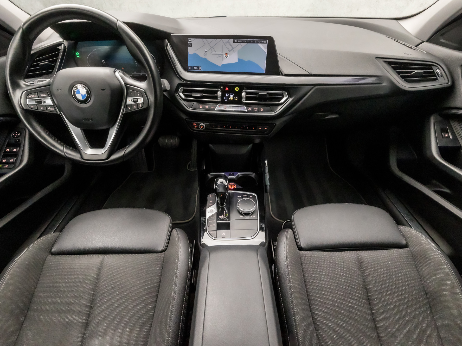 In één oogopslag zijn alle vitale functies afleesbaar dankzij het digitale dashboard. Functies activeren en storingen opsporen? Bij deze auto gaat het eenvoudig via uw smartphone. Overal en altijd. Laat u onderweg niet afleiden, de bediening van het audio-installatiesysteem en ook het navigatiesysteem gaat met knoppen op het stuur en met spraak. Natuurlijk is de audio-installatie voorzien van DAB-ontvangst. Radarsensoren aan de achterkant van de auto zorgen voor een achteropkomend verkeer waarschuwing als de afstand tot het verkeer achter te klein wordt. Nooit meer te warm of te koud. De automatische airconditioning zorgt altijd voor de temperatuur die u kiest. U bent in deze BMW ook voorzien van lederen sportstuur, parkeersensoren voor en achter, regensensor, cruise control, keyless entry en automatisch dimmende binnenspiegel.