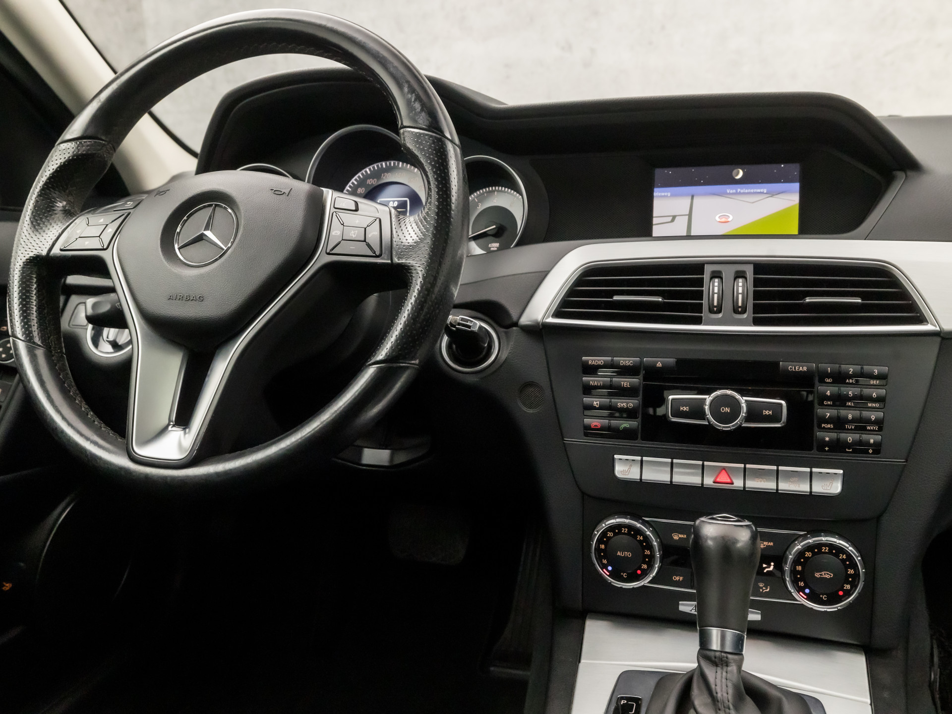 De kortste weg, de zuinigste weg, de snelste weg... elke weg is te vinden met het navigatiesysteem met harde schijf. U verwacht natuurlijk automatische airconditioning in deze auto, en die is er dan ook. Ogen op de weg, handen aan het stuur. De audiobediening op het stuur zorgt dat u probleemloos schakelt tussen zenders. Geen parkeervak is te klein dankzij de assistentie van de parkeersensoren. Om de veiligheid onderweg te verhogen, heeft deze Mercedes-Benz zowel een automatisch inschakelbare verlichting als een regensensor aan boord, zodat hij zelf de verlichting en de ruitenwissers kan inschakelen. Met cruisecontrol (tempomaat), automatisch dimmende binnenspiegel, lederen stuur, isofix-aansluiting, centrale deurvergrendeling met afstandsbediening en boordcomputer is deze auto helemaal compleet.