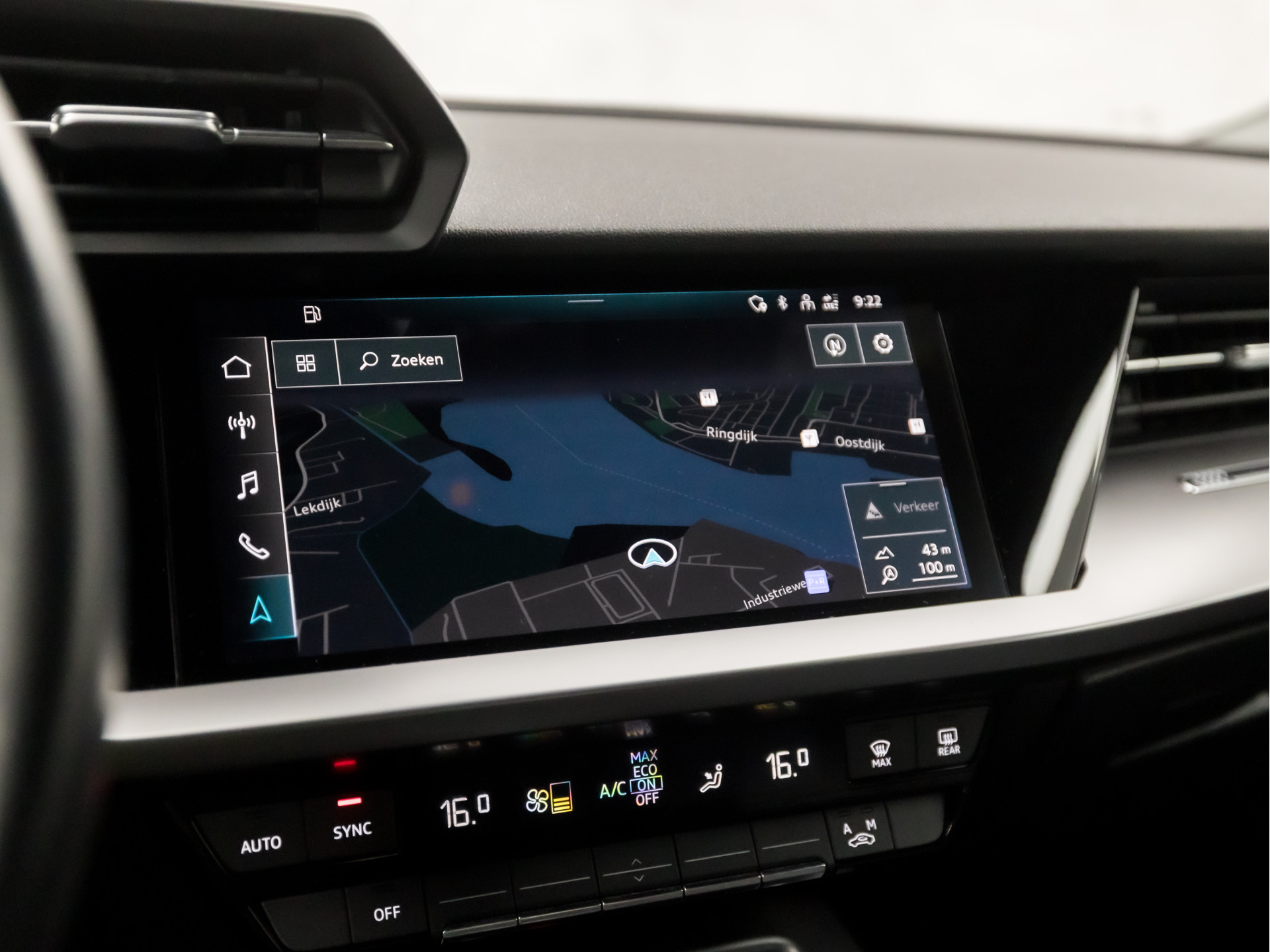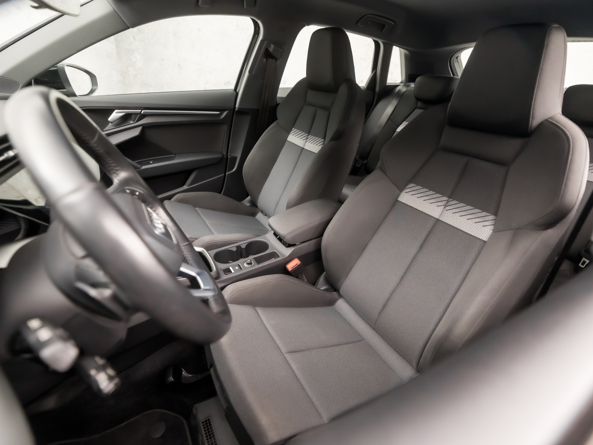 Zoals u mag verwachten van deze Audi A3 Sportback is hij uitgerust met een reeks aan actieve veiligheidssystemen. Een belangrijke bijdrage aan de veiligheid onderweg levert de verkeersbord-detectie in deze Audi. Indien u onbedoeld de rijstrook lijkt te verlaten, reageert het Lane-keeping systeem meteen en corrigeert. De Brake Assist geeft een maximale boost aan het remsysteem in een noodsituatie. Zo verkort u de remweg en verkleint u de kans op ongelukken.