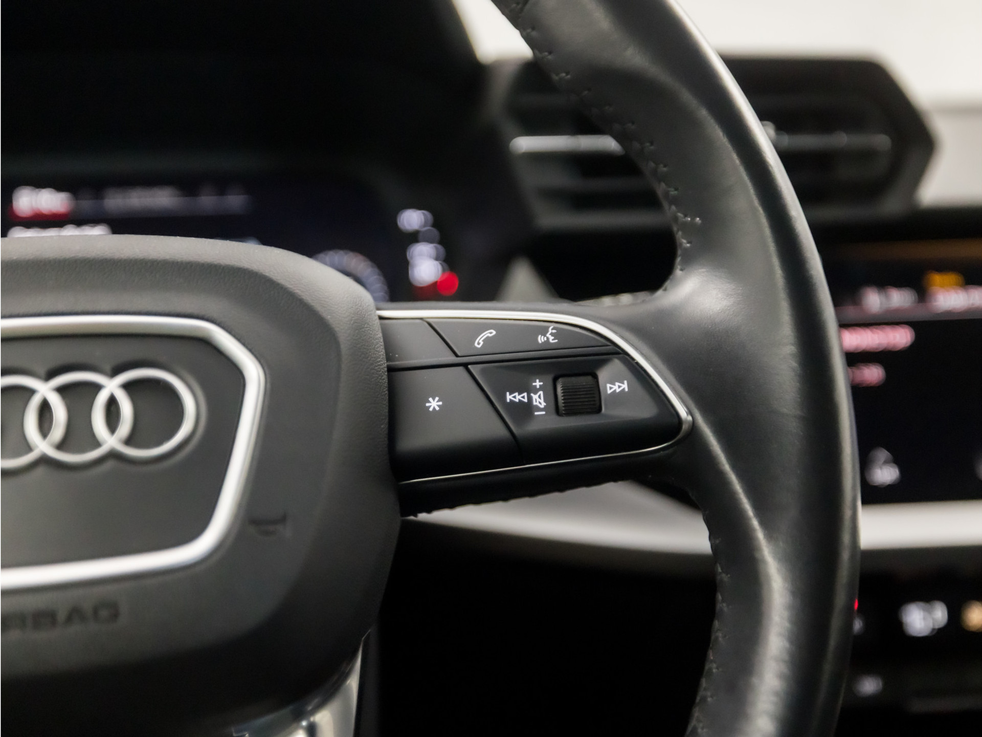 - Sportstuurwiel, multifunctioneel in leder, driespaaks met schakelpaddels