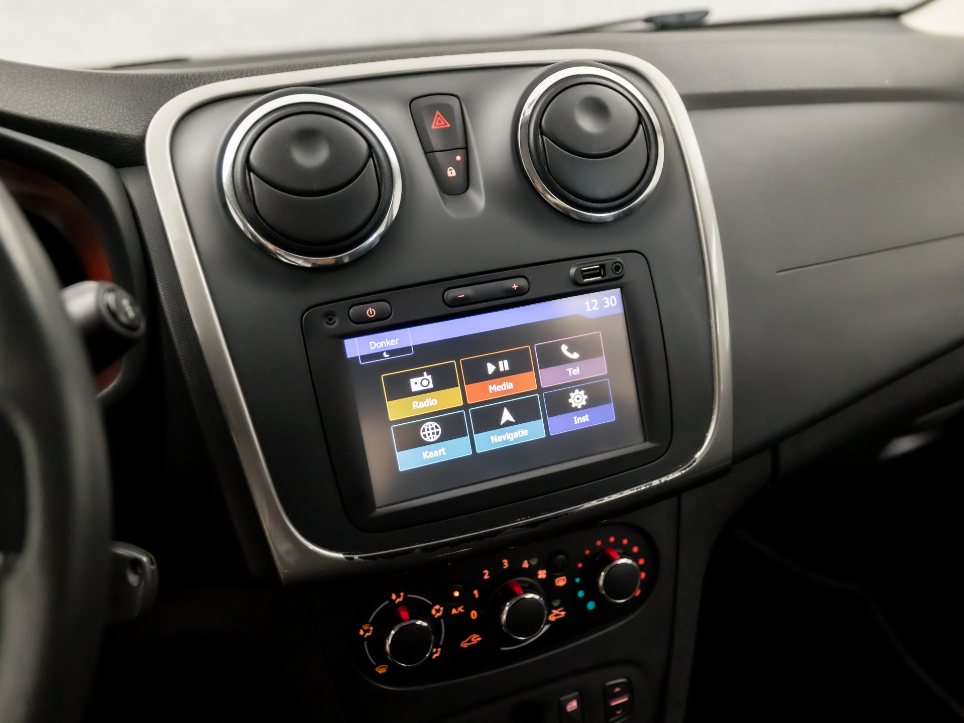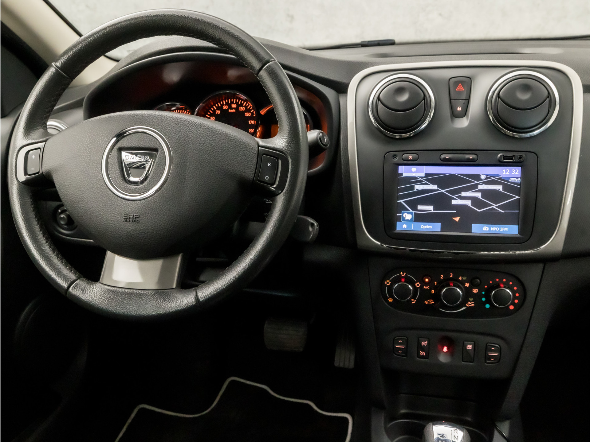 Met de routebegeleiding van het navigatiesysteem kunt u zich volledig op het verkeer concentreren. Alle audioknoppen letterlijk onder handbereik: dat kan met de audiobediening op het stuur. Parkeersensoren ondersteunen u tijdens het in- en uitparkeren. Ook fijn als u op de voorgeschreven snelheid wilt blijven: de cruise control. Met één druk op de knop blaast de airconditioning een koele bries door het interieur. Ook is de Dacia uitgerust met: lederen stuur, isofix-aansluiting, centrale deurvergrendeling met afstandsbediening, boordcomputer en lederen versnellingspook.