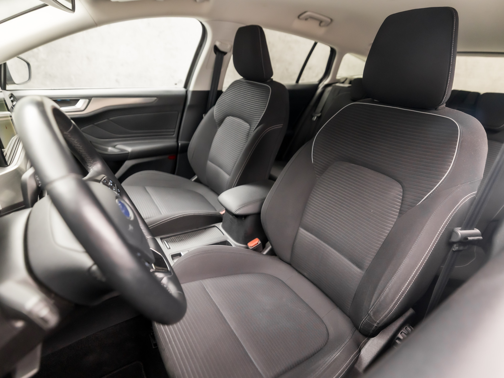 De nieuwste veiligheidssystemen komen in deze Ford Focus Wagon samen. Wat deze auto ook kan, is lezen. Hij 'leest' voor u de verkeersborden tijdens de rit en attendeert u erop door ze op het dashboard te projecteren. Het Lane-keeping systeem let constant op en waarschuwt of corrigeert als u onoplettend over de lijnen van de rijstrook gaat. Forward collision warning helpt u om kop-staart aanrijdingen te voorkomen. Dankzij veiligheidsvoorzieningen als dodehoekdetectie, hill hold functie, brake assist, vermoeidheidsherkenning en bandenspanningcontrolesysteem, bent u steeds veilig onderweg.