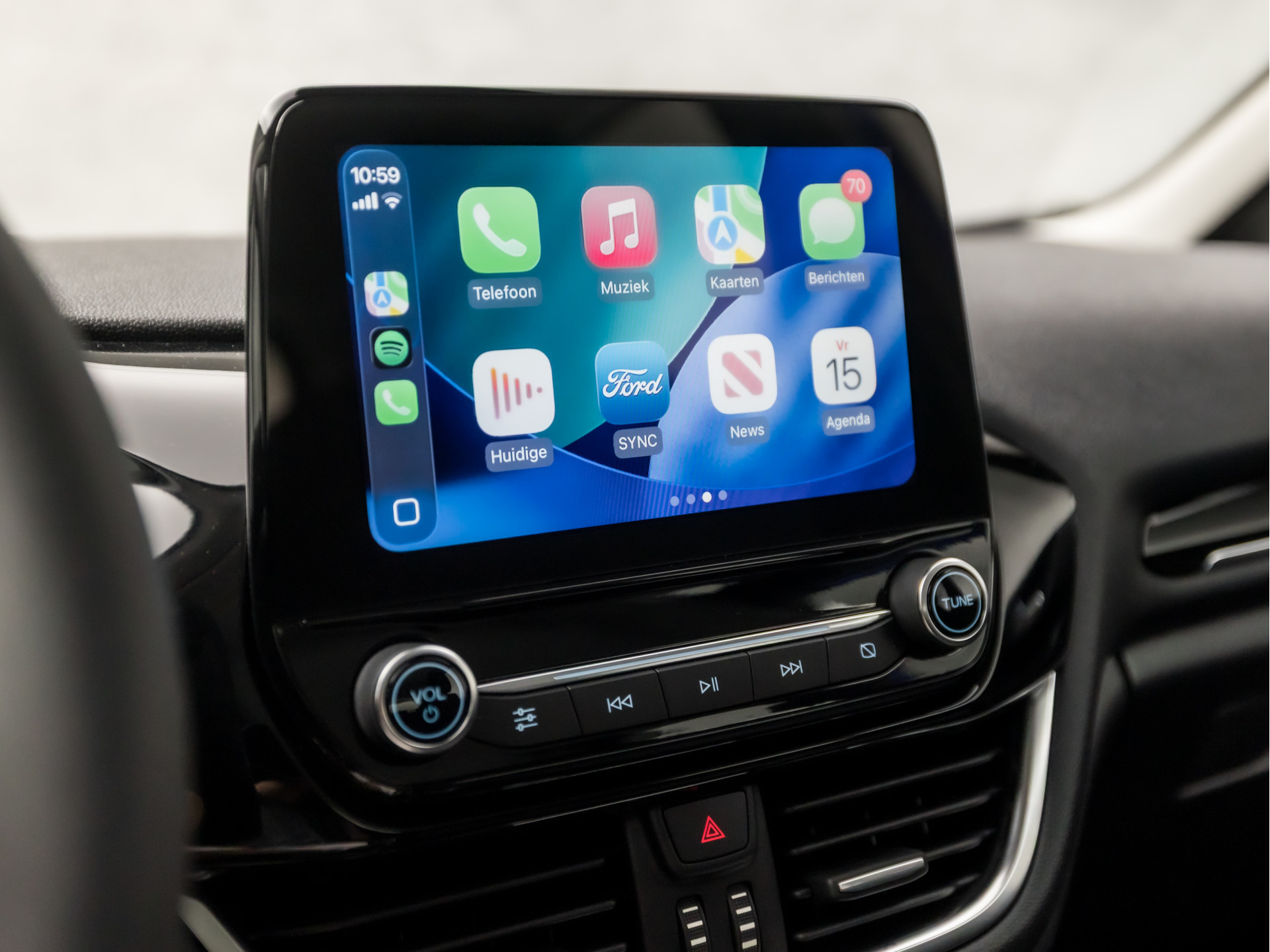 U kunt tijdens de rit uw ogen steeds op de weg houden, want het audio-installatiesysteem (met DAB!) en het navigatiesysteem kunt u bedienen vanaf het stuur of met spraak. Nooit te snel, altijd constant: dat is het voordeel van de aanwezige cruise control. Ja, ook airconditioning is in deze auto aanwezig. Deze Ford is voorzien van lederen stuur, isofix-aansluiting, centrale deurvergrendeling met afstandsbediening, boordcomputer en lederen versnellingspook.