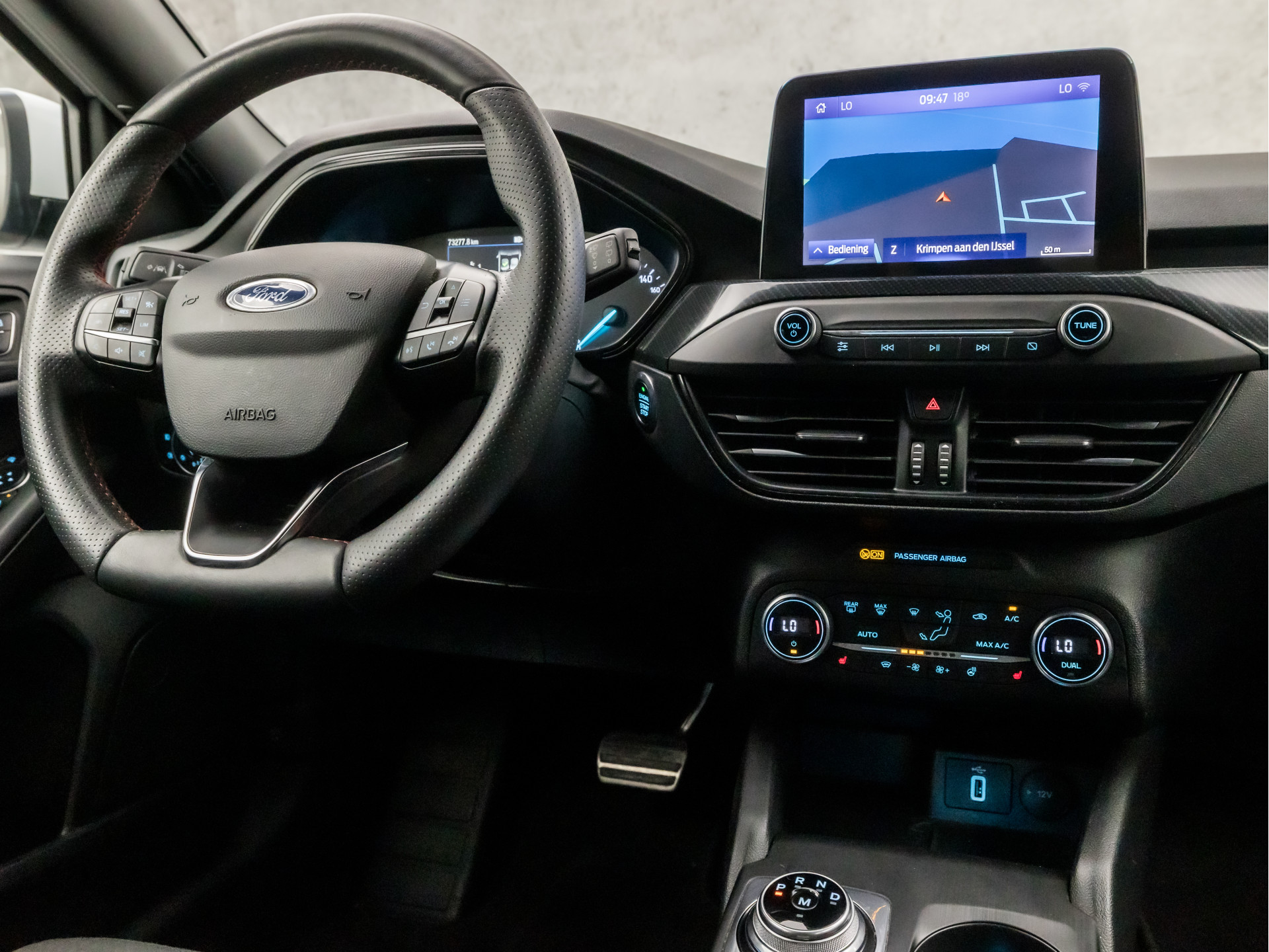Met behulp van de achteruitrijcamera kunt u zo strak inparkeren als u maar wilt! Praat tegen deze auto en de auto doet wat u wilt dankzij de ingebouwde spraakbediening. Deze Ford Focus is 'connected'. Belangrijke functies worden permanent gemeten en zijn uit te lezen via een speciale app, ook op afstand. Ook praktisch: deze auto is voorzien van een eigen navigatiesysteem. De sensoren van de achteropkomend verkeer waarschuwing houden zicht op de dode hoeken achter u. Te weinig afstand tot de achterligger? Het systeem geeft direct een signaal. De uitrusting van deze auto is met WIFI-hotspot, automatische airconditioning, sportstuur met schakelpaddels, DAB ontvangst, regensensor en cruise control behoorlijk compleet.