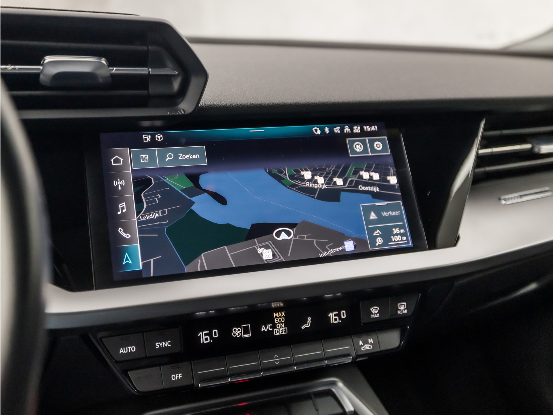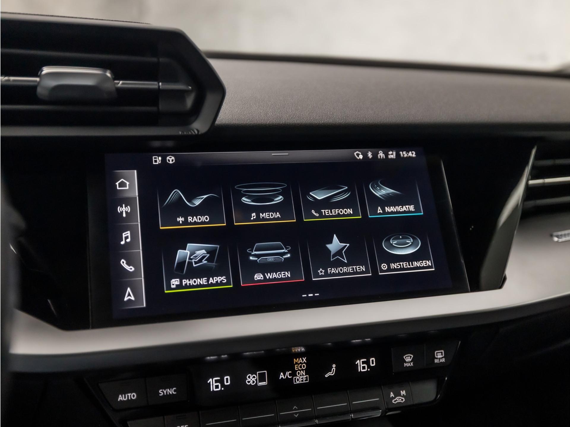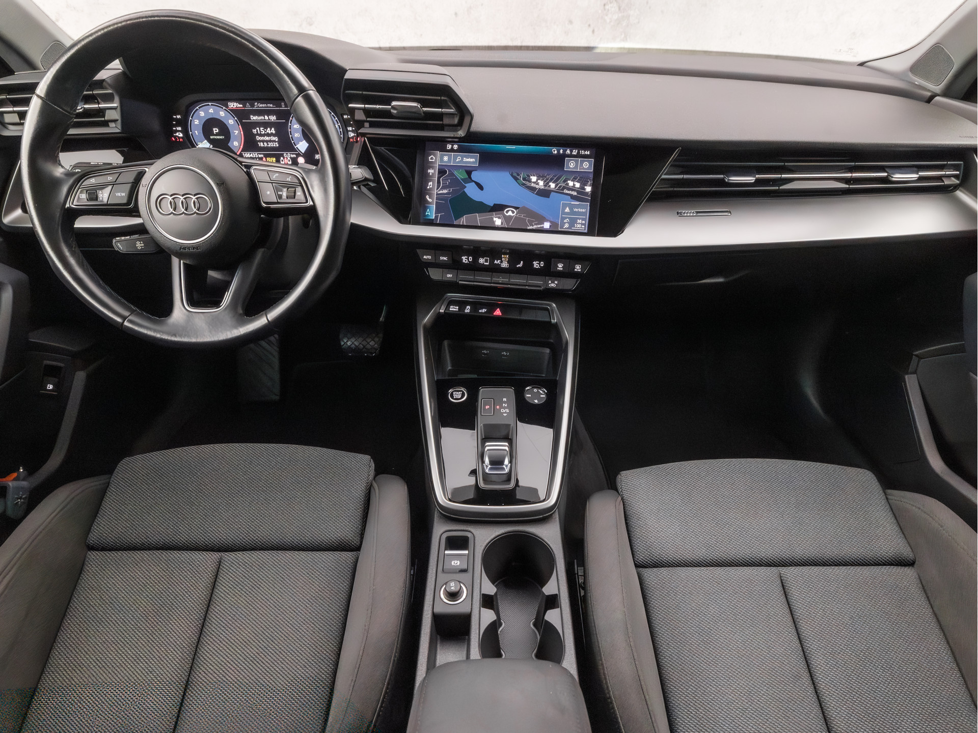 Wat ook opvalt, is de strakke en overzichtelijke informatie die het digitale dashboard levert. Kilometerstand? Oliepeil? Accuspanning? Allemaal te zien via de app. Overal. Altijd. Dankzij Connected Services. Deze Audi is voorzien van knoppen op het stuur om het MMI navigatiesysteem en het audio-installatiesysteem met DAB-ontvangst te bedienen. Gedoe met kabels en stekkers in de sigarettenaansteker is voorbij. De aanwezige draadloze oplaadmogelijkheid voor telefoons zorgt voor wireless recharging van uw smartphone. Met de automatische airconditioning selecteert u de gewenste temperatuur. Het systeem doet de rest. De uitrusting van deze Audi is met WIFI-hotspot, sportstuur met schakelpaddels, parkeersensoren voor en achter, regensensor, cruise control en automatisch dimmende binnenspiegel behoorlijk compleet.