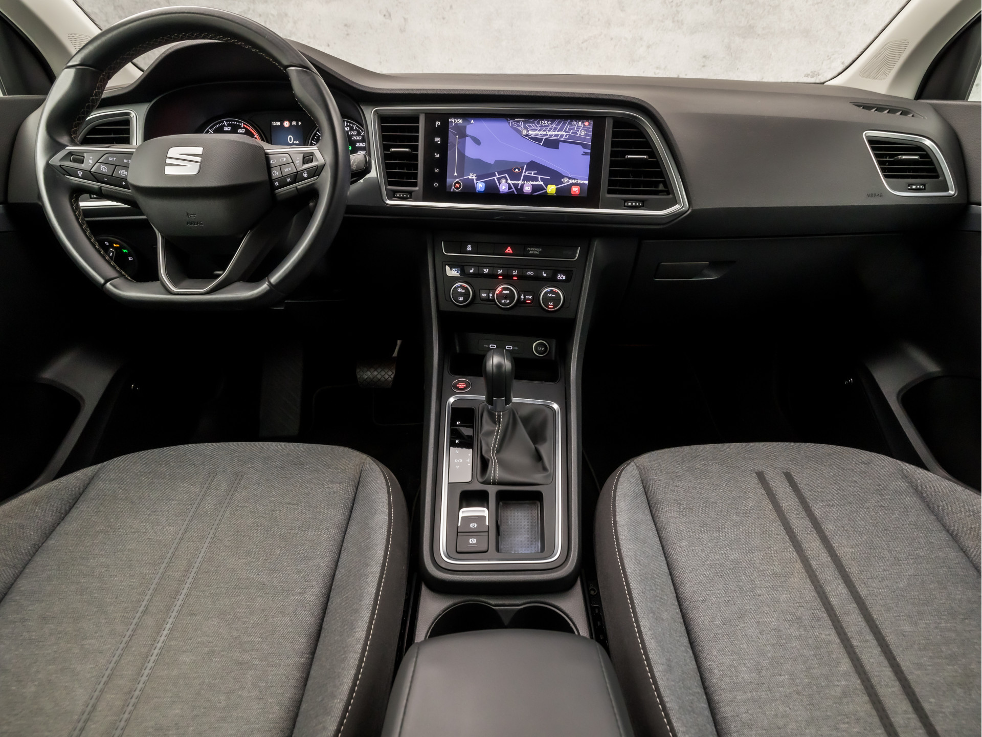 Met het digitale dashboard van deze auto is de aanpassing van uw cockpitinterface een fluitje van een cent. Achteruitrijden en inparkeren worden een eitje dankzij de achteruitrijcamera. Deze SEAT Ateca is 'connected'. Belangrijke functies worden permanent gemeten en zijn uit te lezen via een speciale app, ook op afstand. Elk genre muziek komt tot z'n recht. Het high performance audiosysteem is perfect in te regelen op uw smaak! Onderweg laadt u uw smartphone snoerloos op met behulp van de draadloze oplaadmogelijkheid voor telefoons. De SEAT is standaard voorzien van: dashboard met spraakbediening, full map navigatiesysteem, automatische airconditioning, DAB ontvangst, regensensor en cruise control.