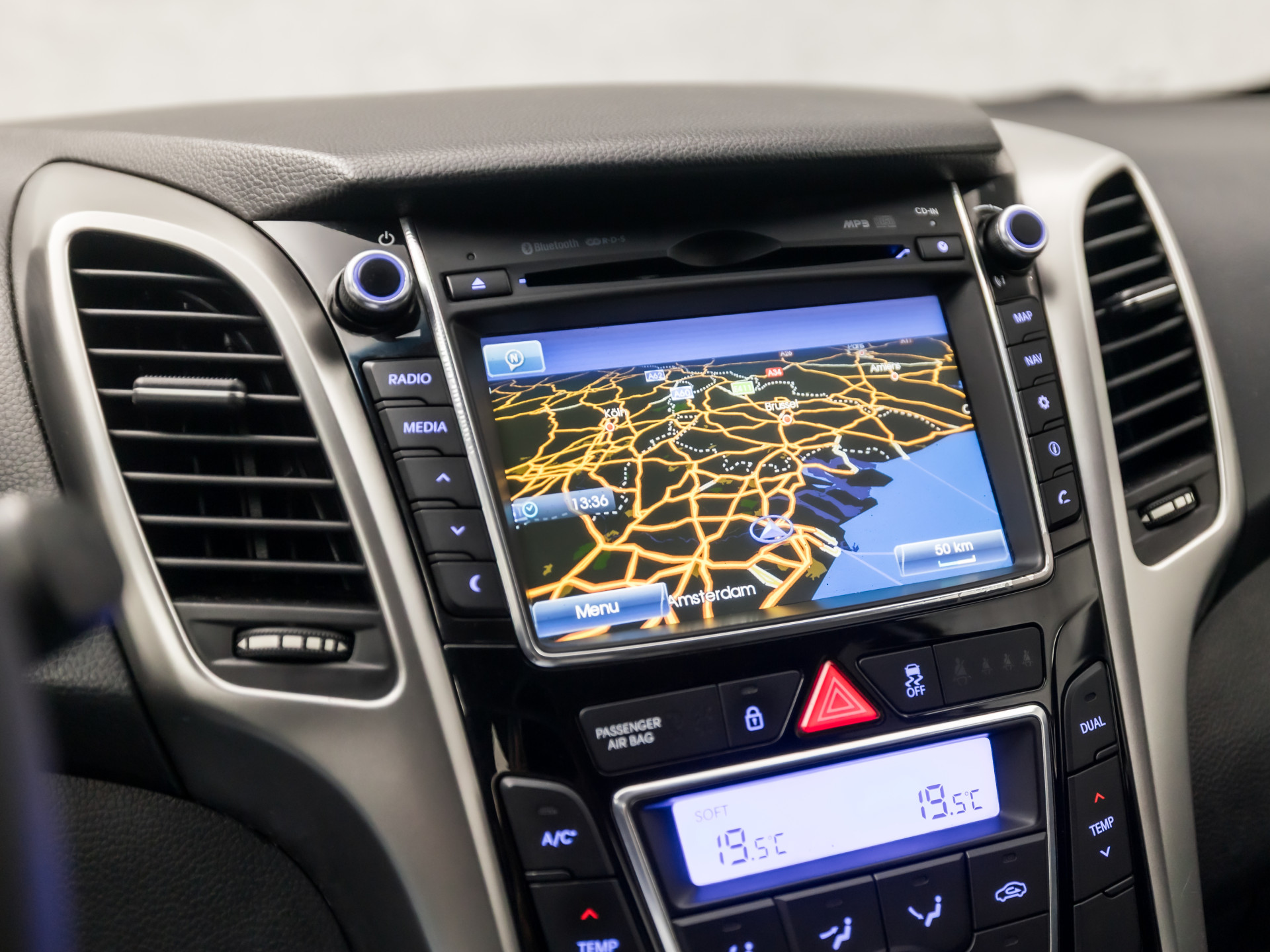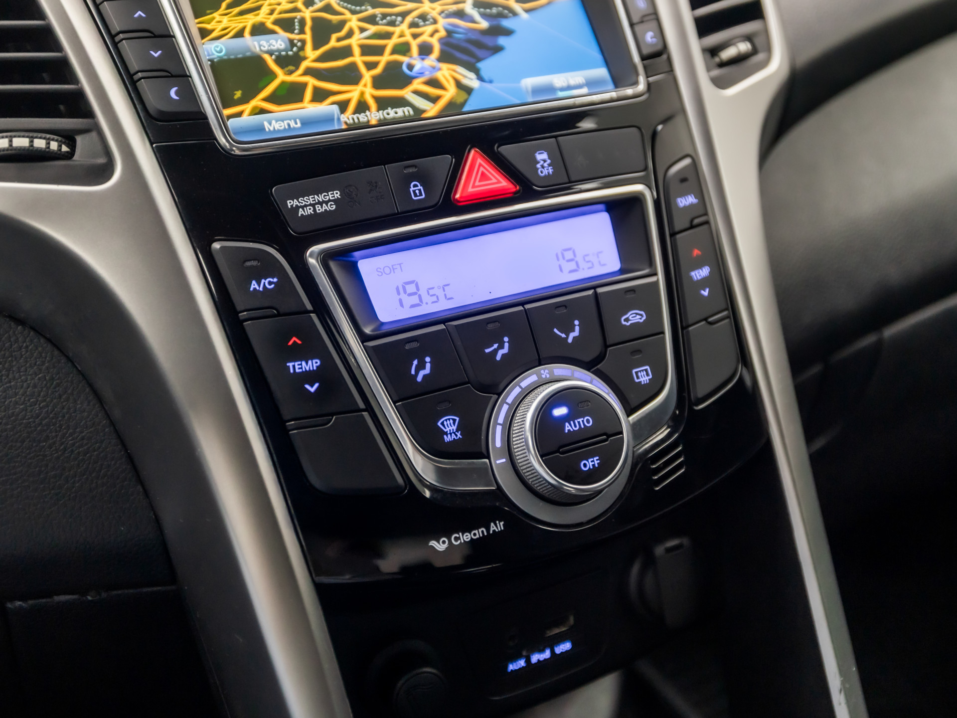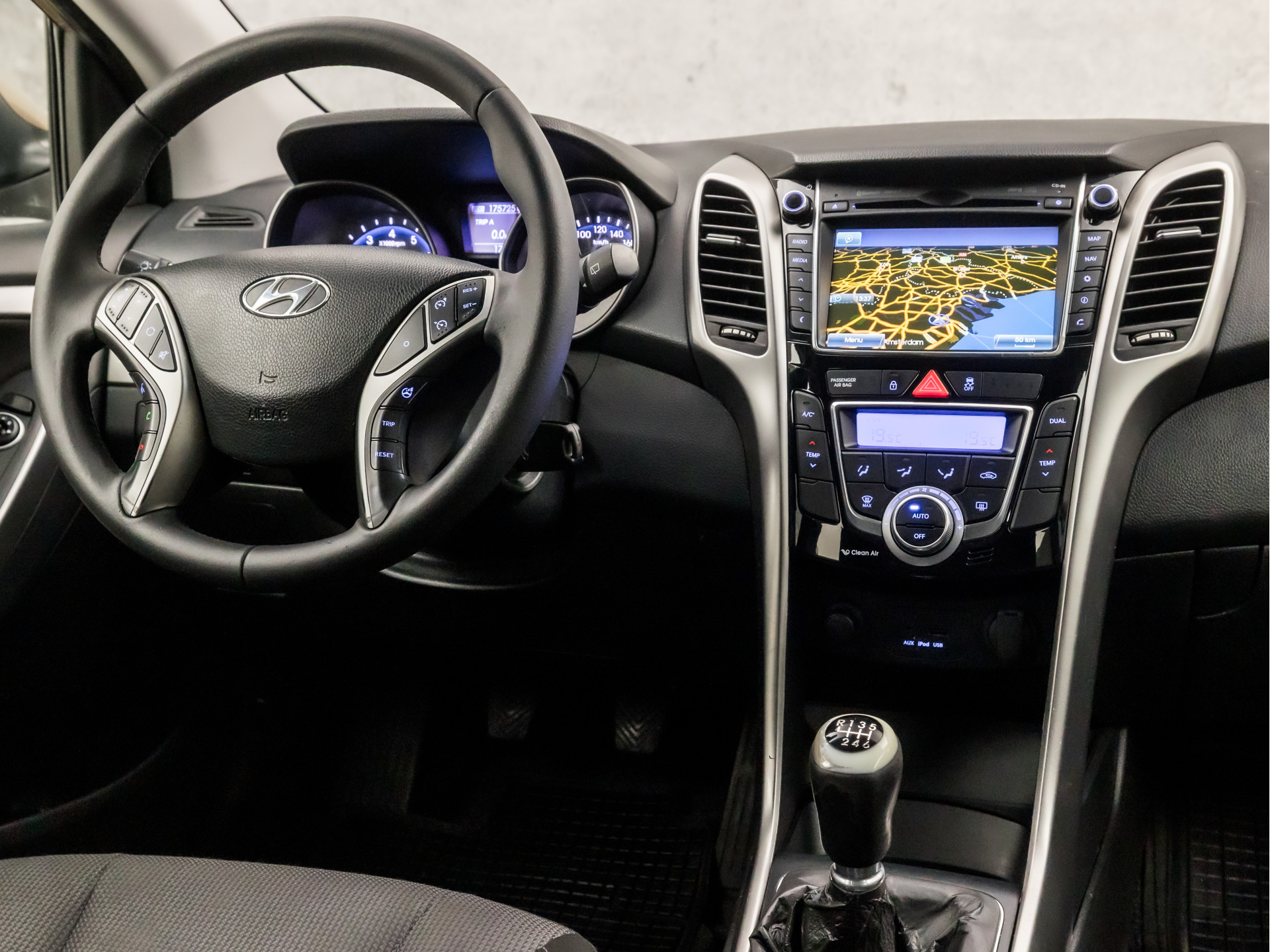 Achteruitrijden en inparkeren worden een eitje dankzij de achteruitrijcamera. Selecteer uw reisbestemming en het navigatiesysteem brengt u snel waar u moet zijn. Met automatische airconditioning hoeft u alleen de gewenste temperatuur in te stellen. Het systeem doet de rest. Om de audiofuncties onderweg aan te passen, hoeft u alleen maar gebruik te maken van de audiobediening op het stuur. Deze Hyundai i30 Wagon is voorzien van een regensensor, zodat de ruitenwissers altijd de juiste snelheid hebben. Ook cruise control, automatisch dimmende binnenspiegel, lederen stuur, isofix-aansluiting, centrale deurvergrendeling met afstandsbediening en boordcomputer zijn aan boord.