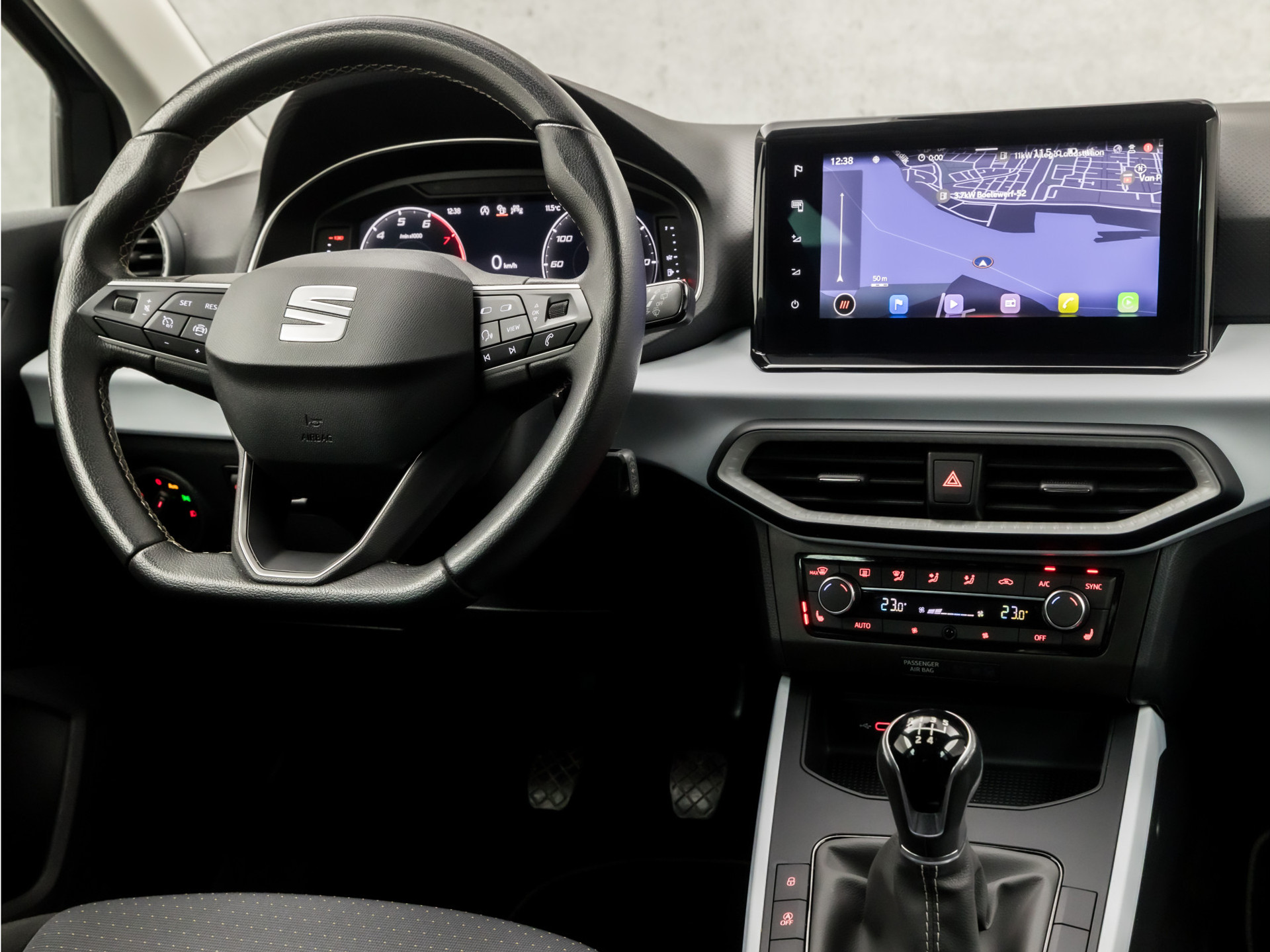Verken de digitale wereld van mobiliteit waar het digitale dashboard alles biedt wat u nodig heeft om uw reis comfortabel te maken. Deze SEAT Arona is 'connected'. Belangrijke functies worden permanent gemeten en zijn uit te lezen via een speciale app, ook op afstand. Van A naar B zonder omwegen: altijd uw eigen navigatiesysteem aan boord! De auto is ook uitgevoerd met automatische airconditioning. Audio aan/uit? Andere zender? Volgende track? Even klikken via de audiobediening op het stuur en het is geregeld. Met DAB ontvangst, parkeersensoren achter, regensensor, cruise control, automatisch dimmende binnenspiegel en lederen stuur is deze SEAT helemaal compleet.