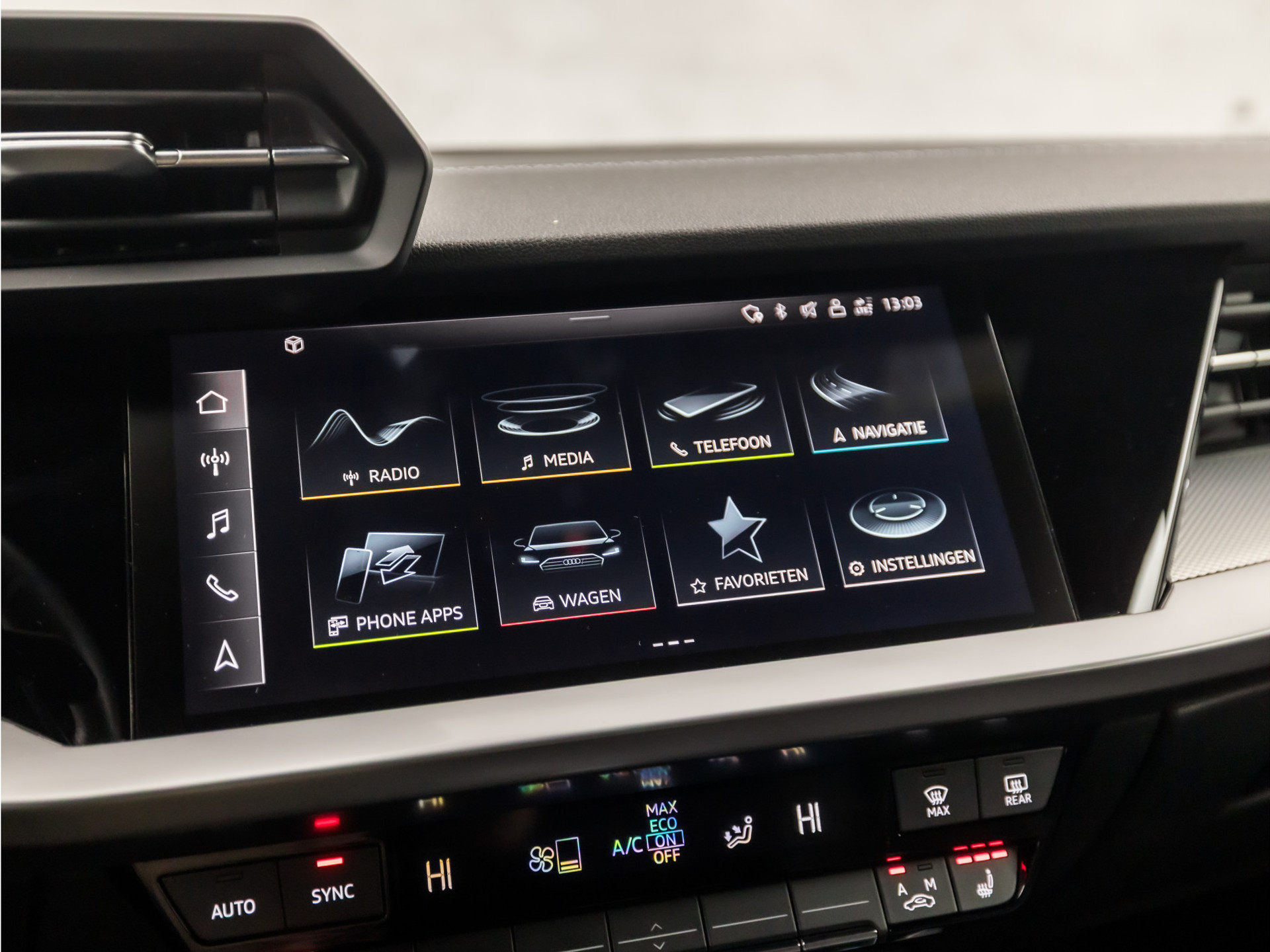 Voor het overzicht tijdens iedere rit is deze Audi A3 Sportback voorzien van een gemakkelijk afleesbaar digitaal dashboard. Adaptive cruise control is veilig en comfortabel. De snelheidsregelaar houdt automatisch afstand tot het voertuig dat voor u rijdt. Een smartphone met internetverbinding legt eenvoudig overal contact met de auto. U kunt functies activeren en de conditie van de auto monitoren. Onderweg kunt u veilig genieten van het audio-installatiesysteem met DAB-radio en het MMI navigatiesysteem. Want in deze Audi bedient u ze vanaf het stuurwiel. Smartphone opladen onderweg? Dat gaat supergemakkelijk door de draadloze oplaadmogelijkheid voor telefoons. En dan is deze auto ook nog eens voorzien van met leder bekleed dashboard, WIFI-hotspot, automatische airconditioning, sportstuur met schakelpaddels, parkeersensoren achter en regensensor.