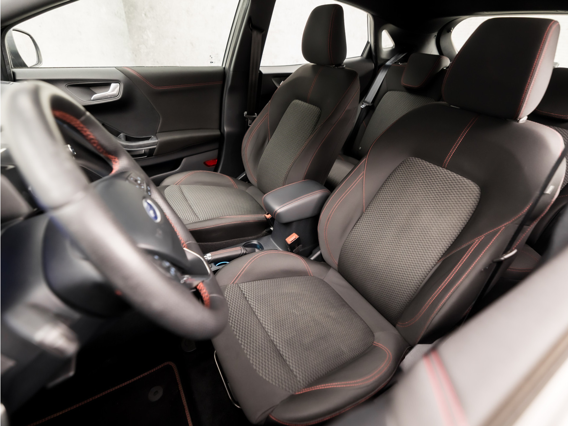 - Middenarmsteun met opbergruimte, bekerhouders en 12V aansluiting