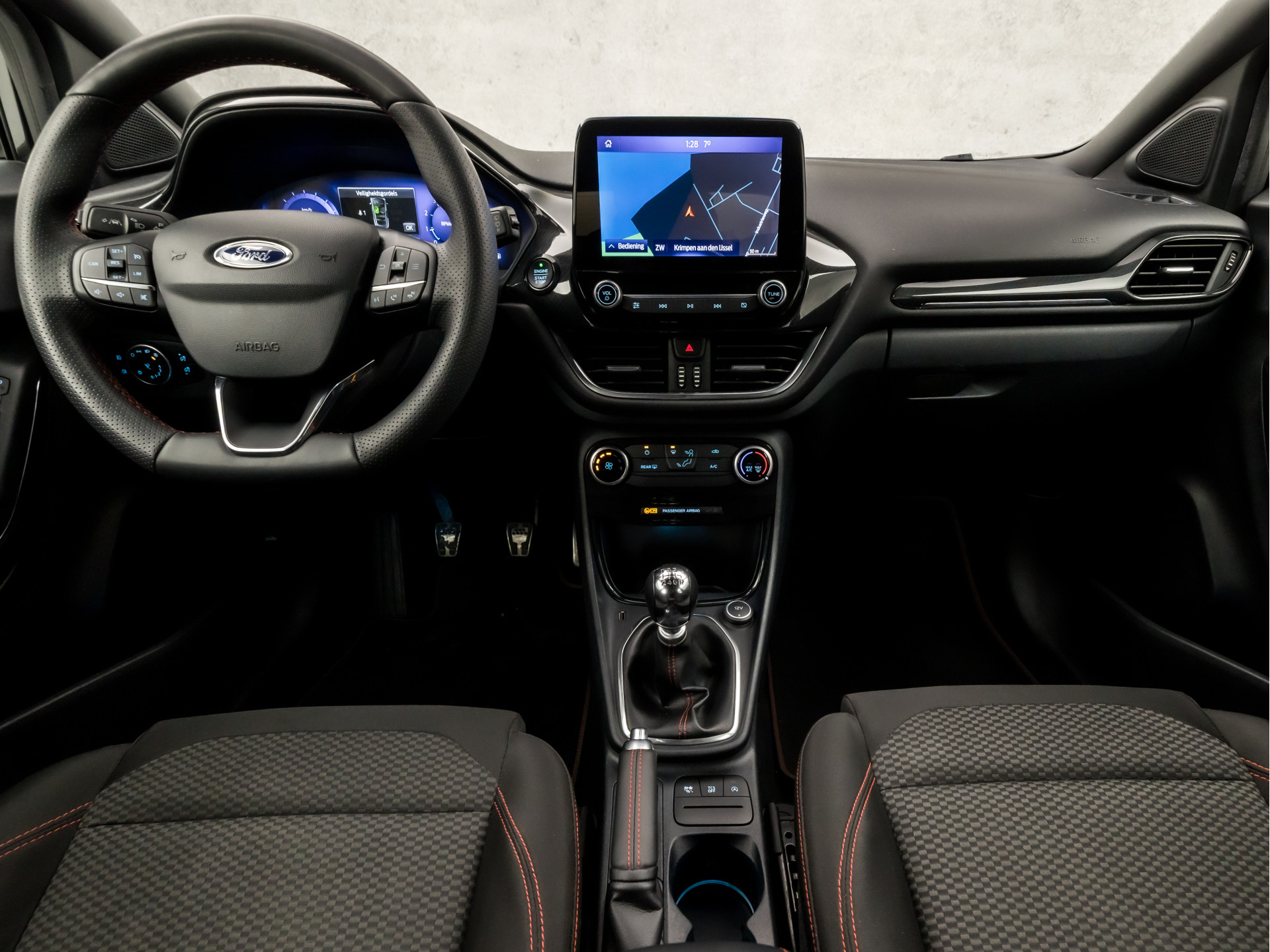 Omdat goed geïnformeerd rijden tegenwoordig om veel meer draait dan alleen snelheid en brandstofpeil, laat het digitale dashboard alle functies zien die u nodig heeft. Spraaksturing betekent dat u verschillende functies met uw stem kunt bedienen. Hoe is het met de banden, de accu en andere onderdelen? Connected Services maakt het inzichtelijk, 24/7 via de app. Nooit meer de weg kwijt: daarvoor zorgt het onboard navigatiesysteem. De achteropkomend verkeer waarschuwing bewaakt de afstand tot achterliggers en geeft een signaal als er te weinig ruimte is. De uitrusting van deze Ford is met WIFI-hotspot, climate control, draadloos opladen, DAB ontvangst, parkeersensoren voor en achter en cruise control met snelheidsbegrenzer behoorlijk compleet.