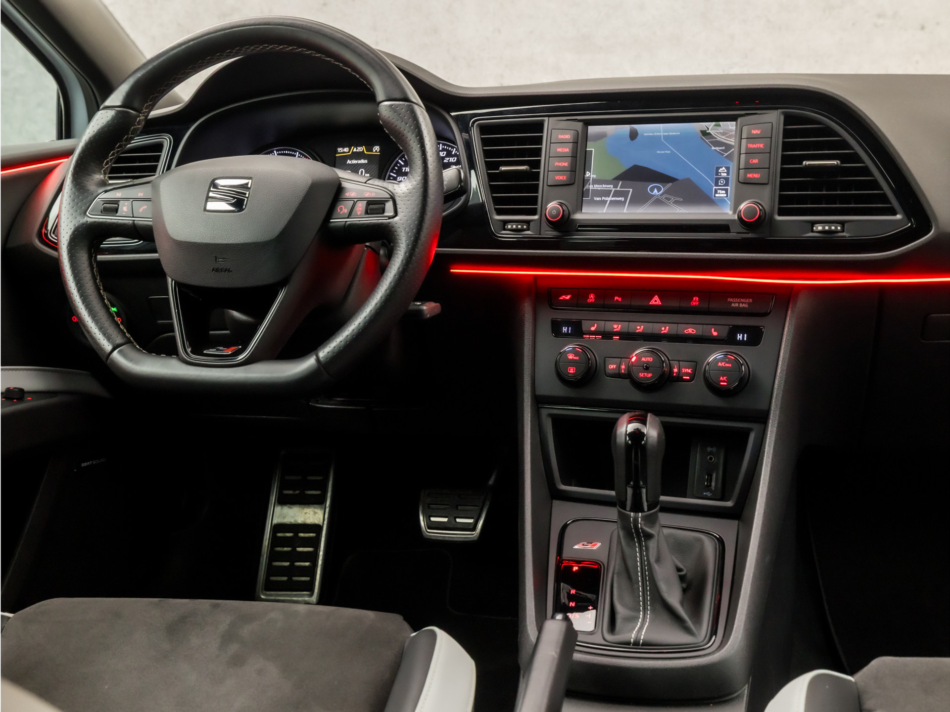 De achteruitrijcamera maakt inparkeren gemakkelijker dan ooit. De sensatie van superieur geluid wordt geleverd door het high performance audiosysteem. Van A naar B zonder omwegen: altijd uw eigen navigatiesysteem met harde schijf aan boord! De automatische airconditioning zorgt onder alle omstandigheden voor een prettige temperatuur. Switchen van radiozender of het geluid dempen - het gaat gemakkelijk en veilig dankzij de audiobediening op het stuur. Ook is de SEAT uitgerust met: sportstuur met schakelpaddels, DAB ontvangst, regensensor, cruise control, automatisch dimmende binnenspiegel en isofix-aansluiting.