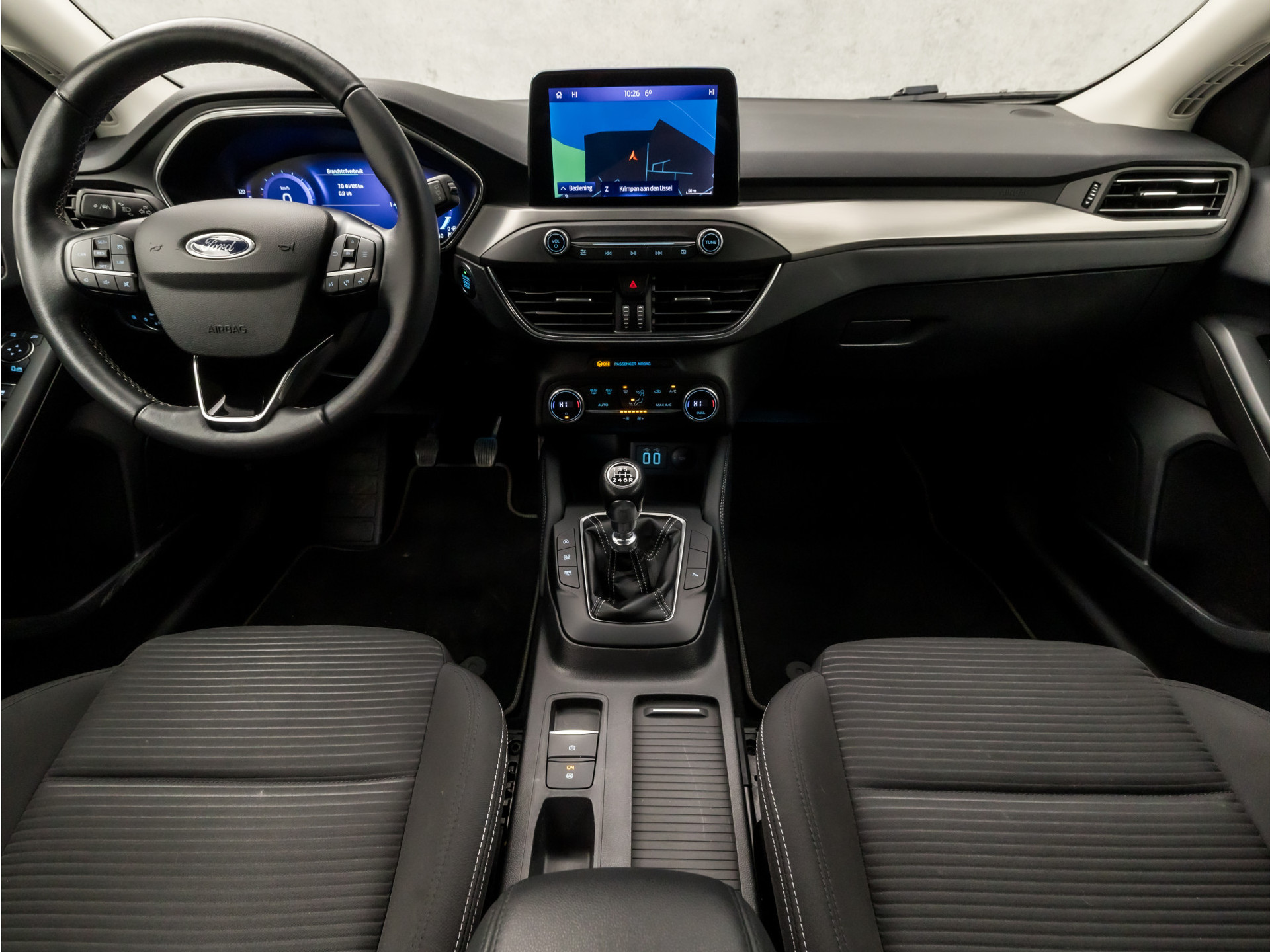 Zoals u mag verwachten van deze Ford Focus Wagon is hij uitgerust met een reeks aan actieve veiligheidssystemen. U rijdt ook veiliger omdat deze auto voor u de verkeersborden langs de weg kan lezen. De belangrijkste borden worden op uw instrumentarium geprojecteerd, zodat u ze niet kunt missen. Indien u onbedoeld de rijstrook lijkt te verlaten, reageert het Lane-keeping systeem meteen en corrigeert. Forward collision warning waarschuwt bij een dreigende aanrijding met een voorligger. Ook helpen het dodehoekdetectie, hill hold functie, brake assist en bandenspanningcontrolesysteem, uw rit tot een veilige rit te maken.