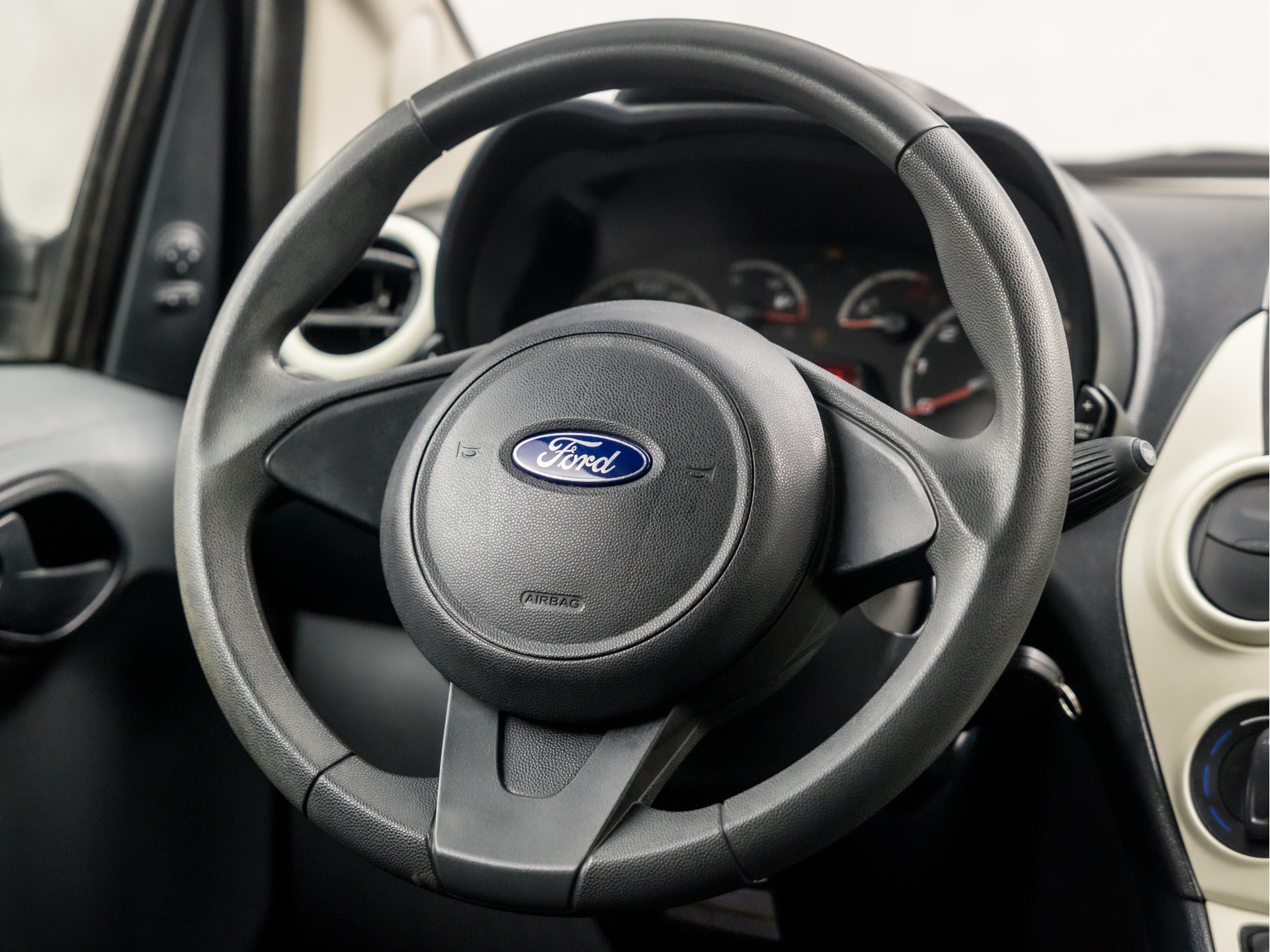 Deze Ford Ka is ontwikkeld om uw leven gemakkelijker te maken. En comfortabeler. En veiliger. Kijk maar naar zijn ruimtelijke interieur, zijn stijlvol gelijnde carrosserie en zijn krachtige motor. Hij heeft een benzinemotor en een handgeschakelde vijfversnellingsbak. Sportief rijden stelt eisen aan een stevige zitpositie voor rijder en bijrijder. Vandaar de strakke sportstoelen! Minder brandstofverbruik, minder uitstoot: het start-stopsysteem laat de motor alleen draaien als het nodig is.