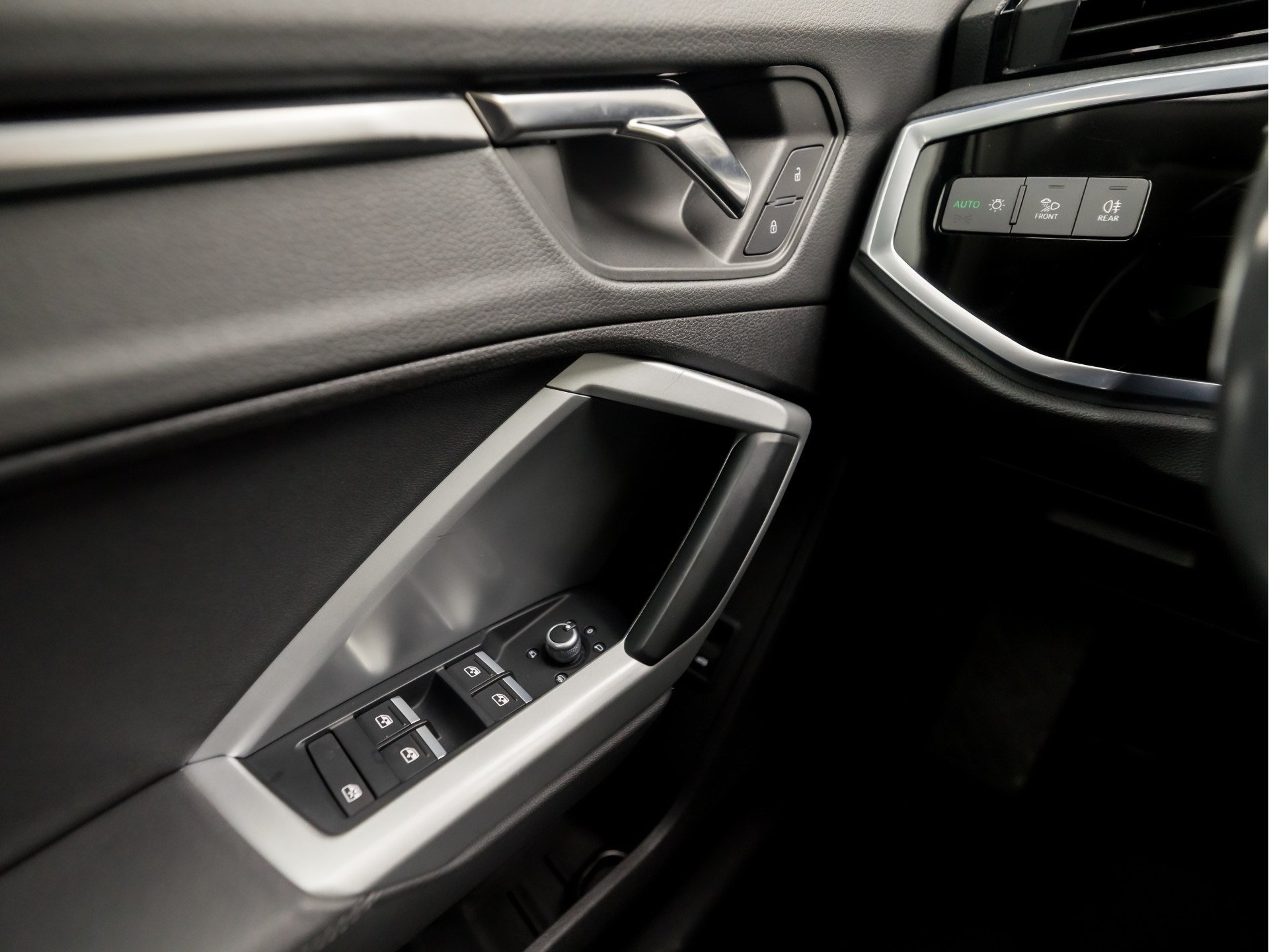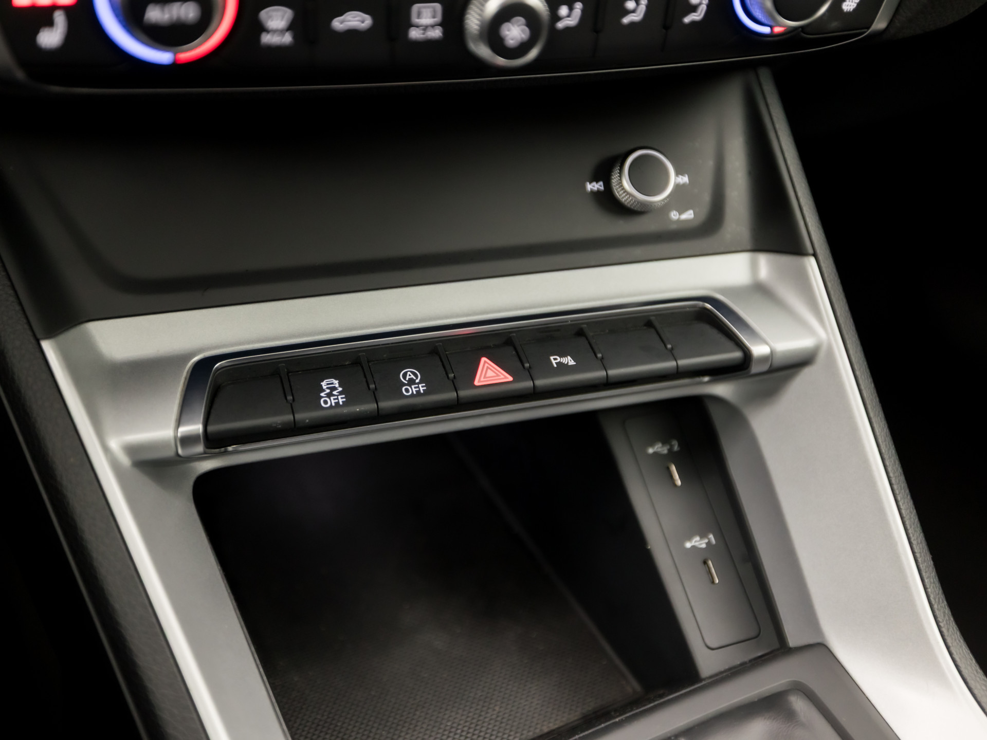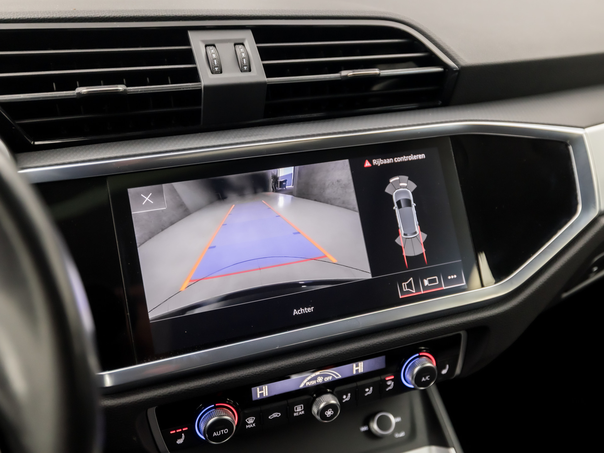 Zoals u mag verwachten van deze Audi Q3 is hij uitgerust met een reeks aan actieve veiligheidssystemen. Ongemerkt buiten de rijstrook raken? Nee hoor, het Lane-keeping systeem waarschuwt en corrigeert. Forward collision warning waarschuwt bij een dreigende aanrijding met een voorligger. De auto is ook uitgerust met hill hold functie, autonoom remsysteem en bandenspanningcontrolesysteem.