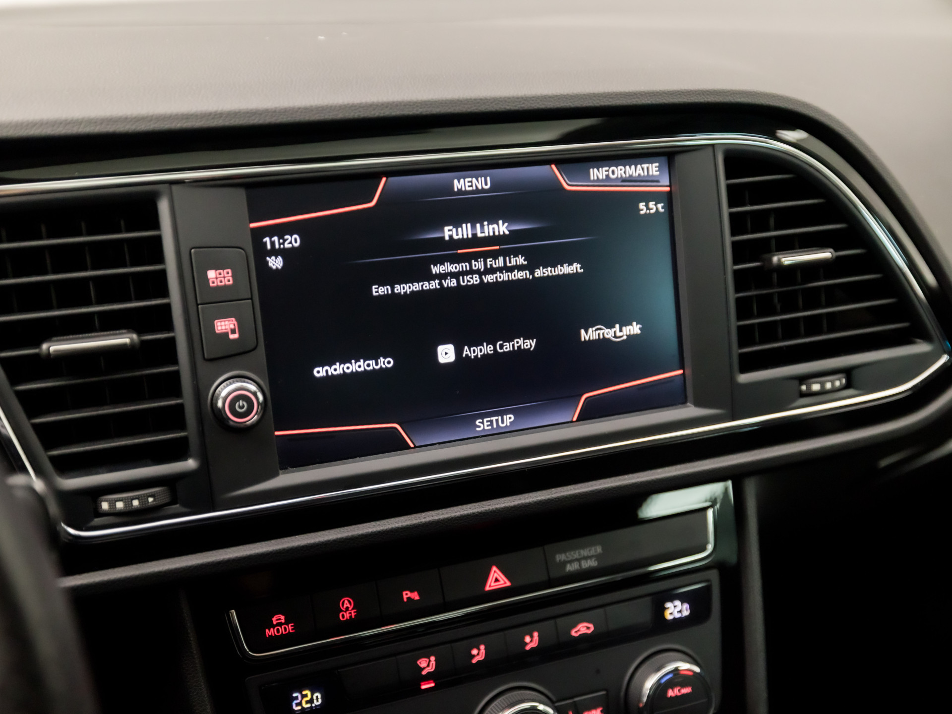 Hoeveel ruimte heeft u nog bij het inparkeren? De achteruitrijcamera brengt helder in beeld wat zich achter de auto bevindt en geeft een geluidssignaal. Uw smartphone wordt een dashboard, met alle functies in beeld. Dankzij Connected Services en de speciale app. Deze SEAT is voorzien van spraakbediening voor het navigatiesysteem en voor het audio-installatiesysteem met DAB-ontvangst. Maar u kunt ook de knoppen op het stuur gebruiken. Onderweg laadt u uw smartphone snoerloos op met behulp van de draadloze oplaadmogelijkheid voor telefoons. Nooit meer te warm of te koud. De automatische airconditioning zorgt altijd voor de temperatuur die u kiest. En deze auto heeft ook regensensor, cruise control, keyless entry, automatisch dimmende binnenspiegel, isofix-aansluiting en centrale deurvergrendeling met afstandsbediening als standaard uitrusting.