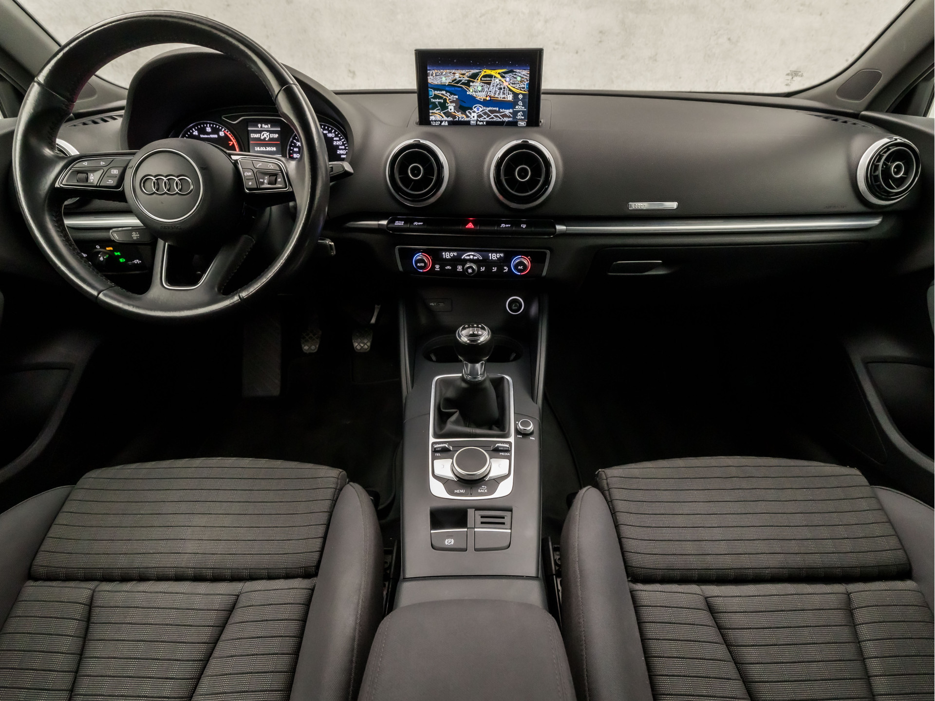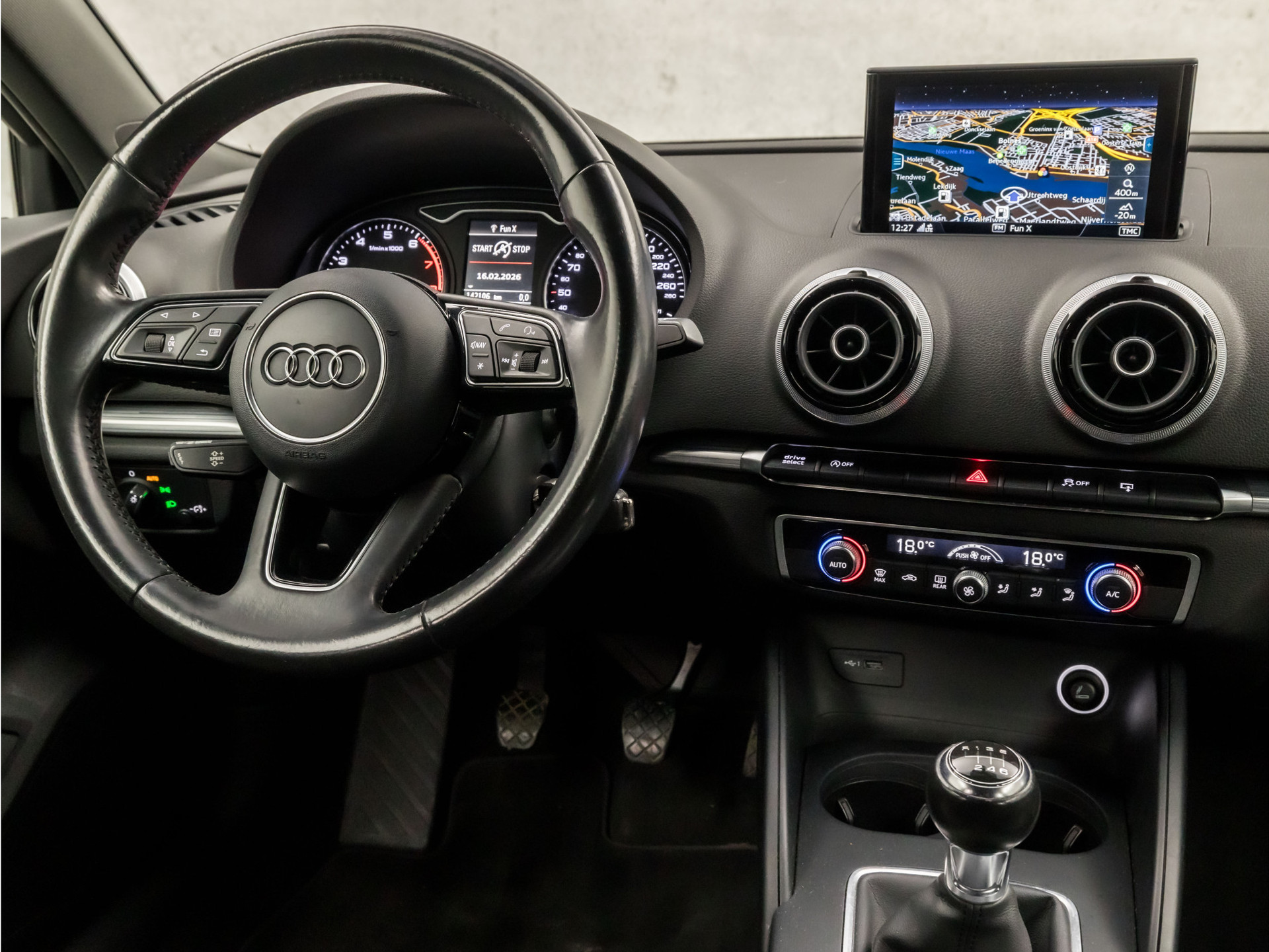 Adaptive cruise control is een comfortabele en veilige optie. Het systeem reguleert de snelheid en houdt automatisch afstand tot uw voorligger. Het audio-installatiesysteem en het navigatiesysteem met harde schijf bedient u veilig met knoppen op het stuur. Automatische airconditioning verwarmt of koelt het interieur met een druk op de knop. Een plekje vinden in de binnenstad is één, inparkeren is twee. Voor dat laatste heeft deze Audi A3 Sportback prima parkeersensoren die u een handje helpen. En deze auto heeft ook lederen sportstuur, automatisch dimmende binnenspiegel, isofix-aansluiting, centrale deurvergrendeling met afstandsbediening, boordcomputer en lederen versnellingspook als standaard uitrusting.