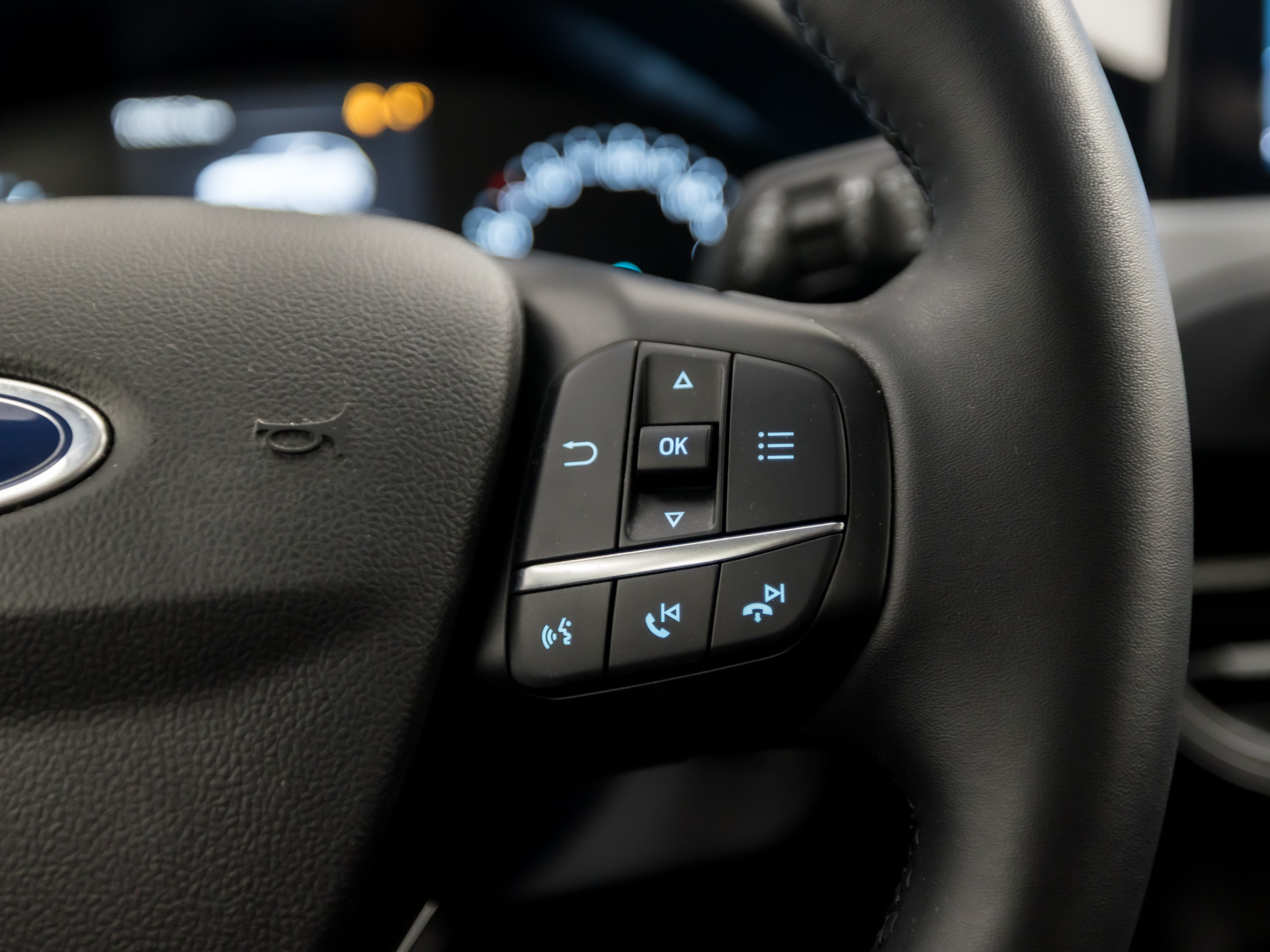 Vanaf elke plek contact maken met deze auto: dat kan met behulp van remote services, die u simpel activeert met uw smartphone. Met spraakbediening of de knoppen op het stuur regelt u het audiosysteem en het navigatiesysteem, terwijl u uw blik op de weg gericht houdt. De audio-installatie biedt daarbij glasheldere ontvangst dankzij DAB-ontvangst. De kans op een kop-staart botsing wordt sterk gereduceerd door het systeem van achteropkomend verkeer waarschuwing. De meeste schade bij inparkeren komt van een randje of paaltje dat u even niet zag. Maar de parkeersensoren zien alles en waarschuwen op tijd. Natuurlijk is een complete auto als deze ook voorzien van sensoren die de omgeving in de gaten houden. Deze Ford heeft niet alleen een automatisch inschakelbare verlichting aan boord, maar ook een regensensor. Wat u ook in deze auto kunt vinden zijn WIFI-hotspot, cruise control, lederen stuur, isofix-aansluiting, centrale deurvergrendeling met afstandsbediening en boordcomputer.