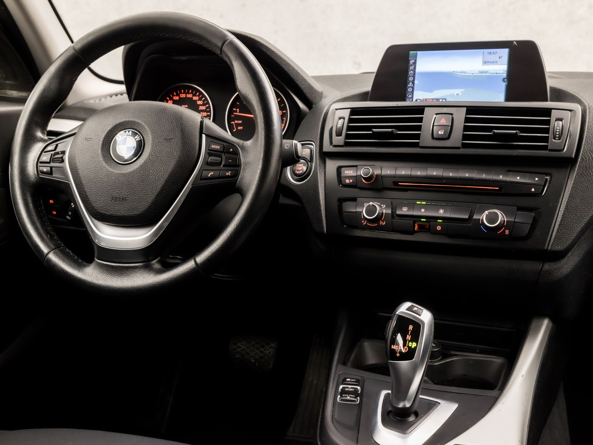 Nooit meer de weg kwijt: daarvoor zorgt het onboard navigatiesysteem met harde schijf. Met de automatische airconditioning selecteert u de gewenste temperatuur. Het systeem doet de rest. Het audiosysteem laat zich gemakkelijk bedienen met de audiobediening op het stuurwiel. Een constante snelheid is goed voor de ontspanning onderweg, en de cruise control zorgt ervoor. Muziek kan draadloos worden afgespeeld dankzij de audiostreaming via bluetooth. De BMW is standaard voorzien van: lederen sportstuur, keyless entry, buitentemperatuurmeter, usb-aansluiting, centrale deurvergrendeling met afstandsbediening en boordcomputer.