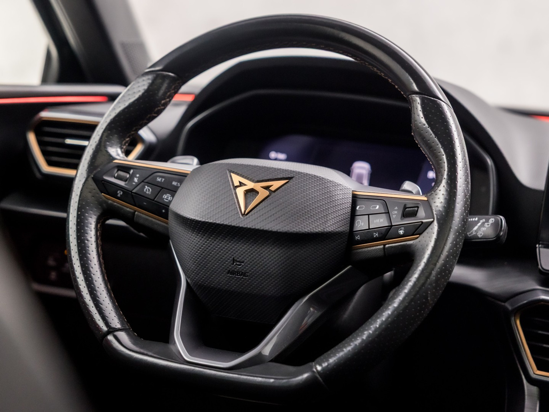 Het is een auto die is ontworpen om niet alleen functioneel te zijn, maar om bovendien uitstekende prestaties neer te zetten. Een viercilinder benzinemotor en een automatische transmissie zorgen voor de uitstekende prestaties van deze auto. Met zijn lederen bekleding is deze CUPRA comfortabel en stijlvol. 's Winters komen de verwarmbare voorstoelen heerlijk van pas. Comfortabel zitten, ook als de rit onstuimig is? Dat kan met de sportstoelen. Wat een licht geeft dat glazen elektrisch bedienbare panoramadak. Geen gekleum meer in de koude dagen. Het verwarmd stuurwiel voelt als een weldaad na het ijskrabben. Tot de uitrusting behoren ook 19 inch lichtmetalen velgen, zwarte hemelbekleding, donker getint glas achter, sportuitlaat en bestuurdersstoel met lendensteunverstelling.