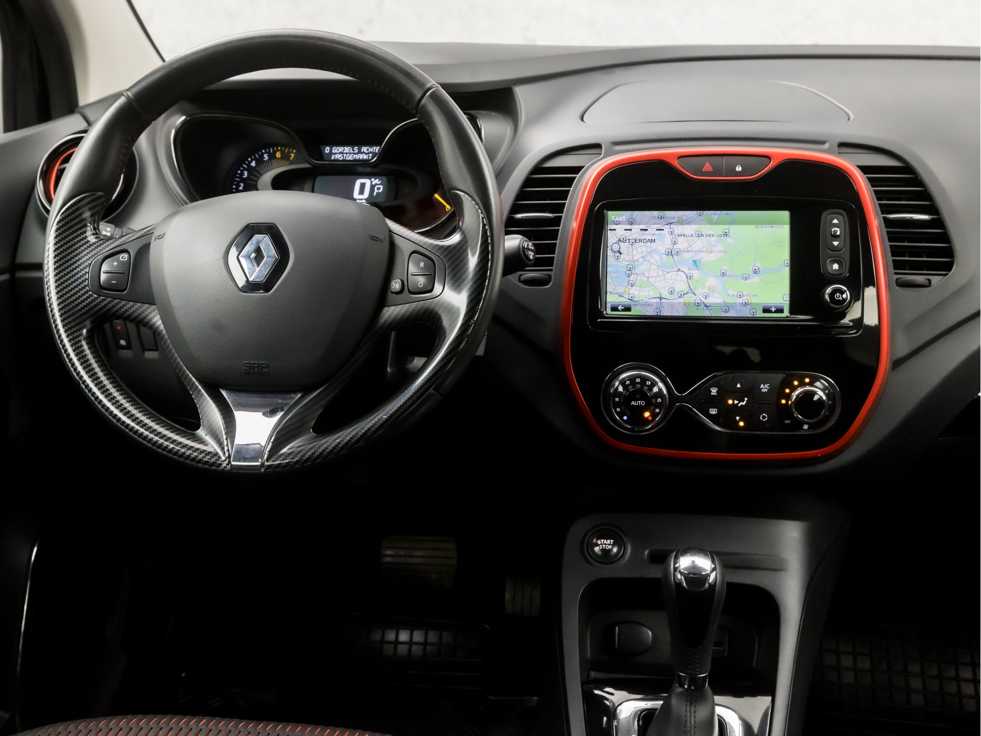 Kommaar-kommaar-kommaar, aldus de achteruitrijcamera. Iedere centimeter vrije ruimte komt haarscherp in beeld. Schadevrij inparkeren maar! In deze Captur vindt u niet alleen schakelaars op het stuur om het navigatiesysteem te bedienen en het audio-installatiesysteem met DAB-ontvangst, maar er is ook spraakbediening. Automatische airconditioning regelt volautomatisch de temperatuur. U kiest de gewenste temperatuur en het systeem doet de rest. Het drukke verkeer eist onderweg al uw aandacht op. Daarom is het goed dat deze Renault is voorzien van diverse systemen die u assisteren tijdens de rit. Een automatisch inschakelbare verlichting neemt het waar als het donker wordt of gaat schemeren, en schakelt dan automatisch de verlichting in. Op dezelfde manier "ziet" de regensensor de eerste spatjes regen en schakelt dan de ruitenwissers in, en als het harder gaat regenen zet hij de ruitenwissers ook in een snellere stand. Cruise control houdt automatisch de ingestelde snelheid vast. Zo kunt u zich volledig op het verkeer concentreren. Met keyless entry, lederen stuur en versnellingspook, isofix-aansluiting, centrale deurvergrendeling met afstandsbediening, boordcomputer en lederen versnellingspook is deze Renault helemaal compleet.