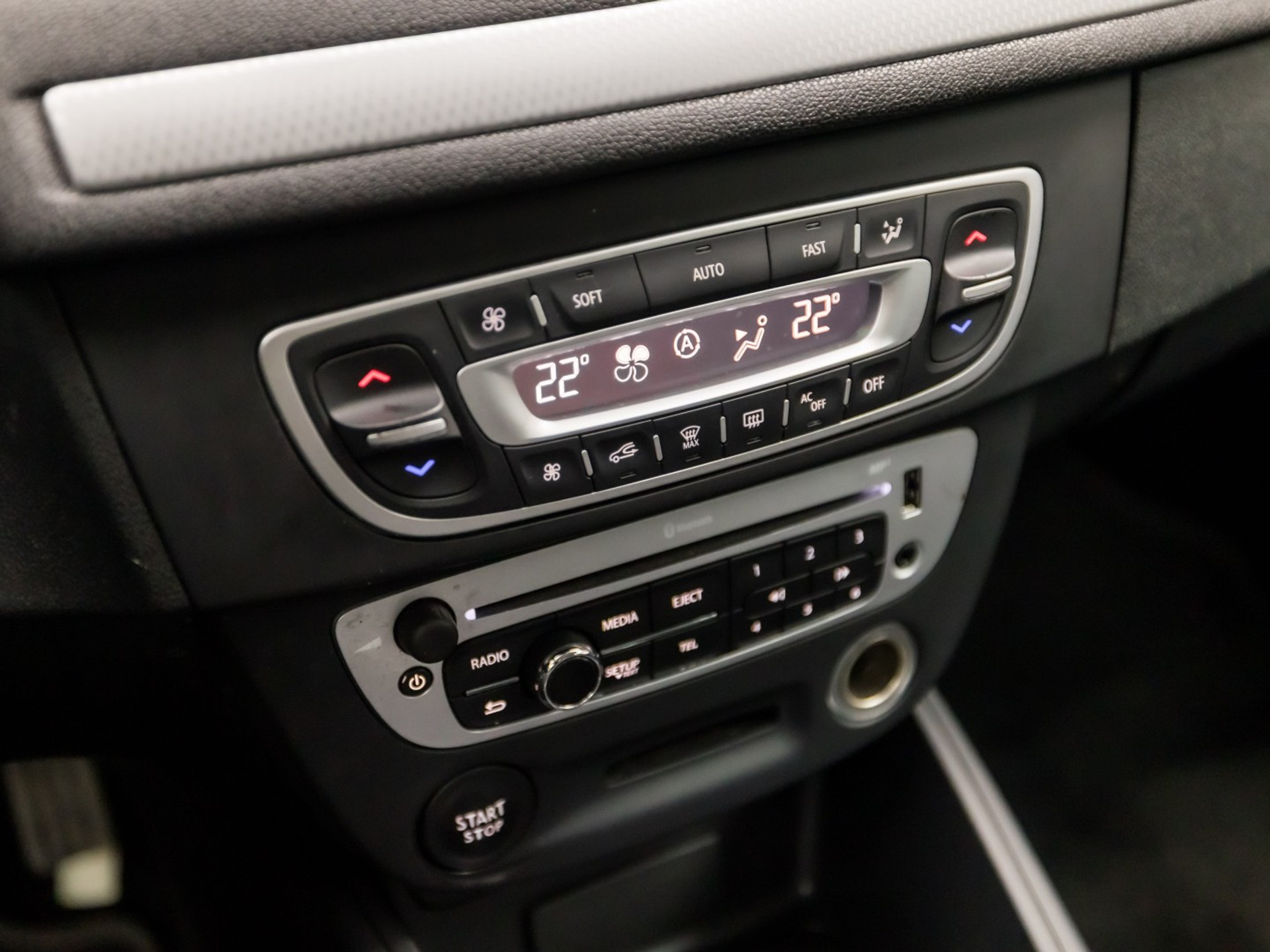 Het navigatiesysteem brengt u soepel en vlot naar uw bestemming. Nooit meer te warm of te koud. De automatische airconditioning zorgt altijd voor de temperatuur die u kiest. Kom-maar-kom-maar...ho! Zo eenvoudig is het voordeel van parkeersensoren. En zo behulpzaam! Achter het stuur van deze Renault bent u niet alleen. De auto kijkt als het ware met u mee tijdens de rit. De regensensor schakelt de ruitenwissers in als het nodig is en de automatisch inschakelbare verlichting doet de lichten voor u aan. Op een rustige weg komt de cruise control helemaal tot z'n recht. Extra opties op deze auto zijn: keyless entry, lederen stuur, usb-aansluiting, boordcomputer en lederen versnellingspook.
