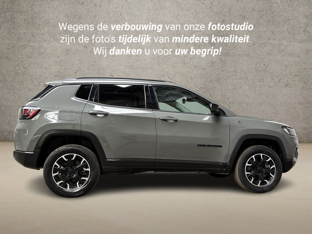 Een occasion om van te dromen. Deze Jeep Compass brengt behalve een pittige motor en een vriendelijke kilometerstand ook de nodige extra's mee. Deze Jeep Compass is vanwege de hybride motor een echte slimmerd. Want u rijdt zowel op brandstof als elektrisch. En dat scheelt in de kosten! Gladde weg, natte weg, steile weg of ruige weg? De vierwielaandrijving trekt zich er niks van aan en je vervolgt probleemloos je route met deze 4WD! Niet alleen de stoelen, maar een compleet lederen interieur. Dat krijgt u er allemaal bij, inclusief het elektrisch bediende glazen panorama dak. Laat die bochten maar komen! In de sportstoelen zitten u en uw bijrijder altijd goed! Ook is de auto voorzien van: 17 inch lichtmetalen velgen, LED koplampen, adaptief onderstel, trailer assistent, donker getint glas achter en in delen neerklapbare achterbank.
