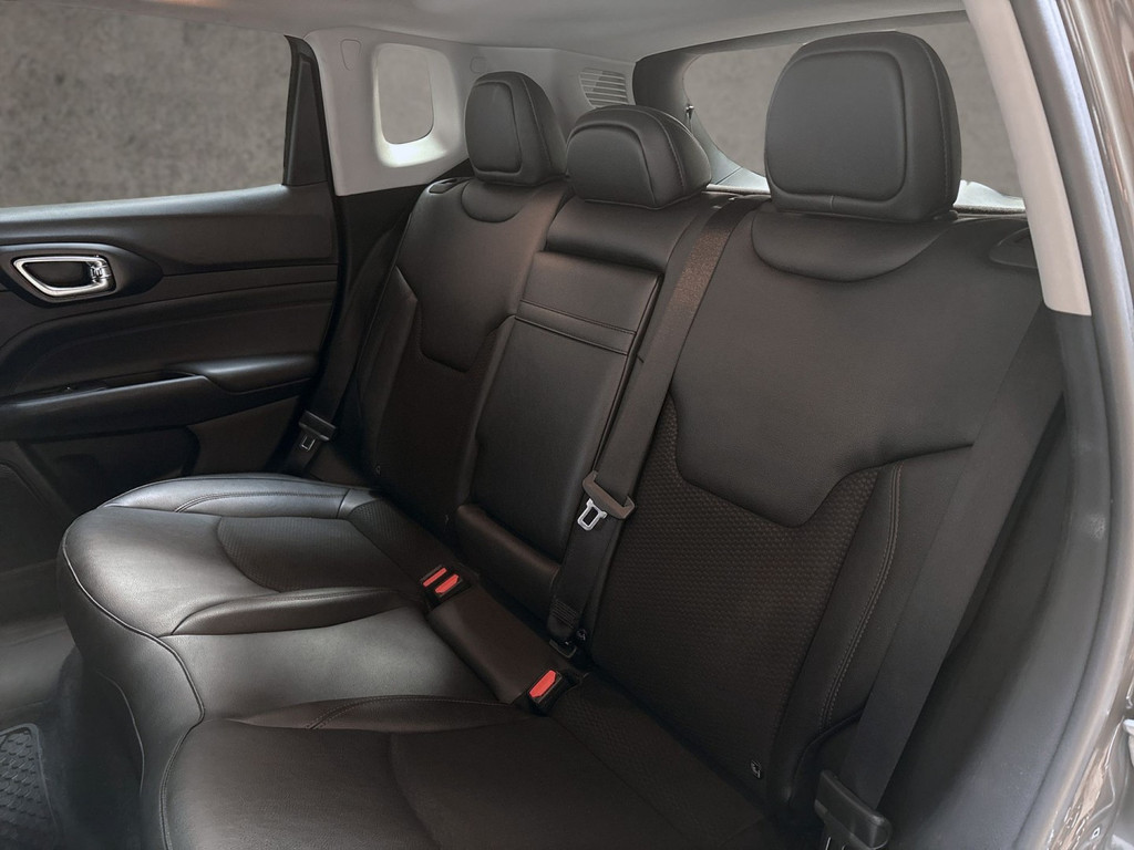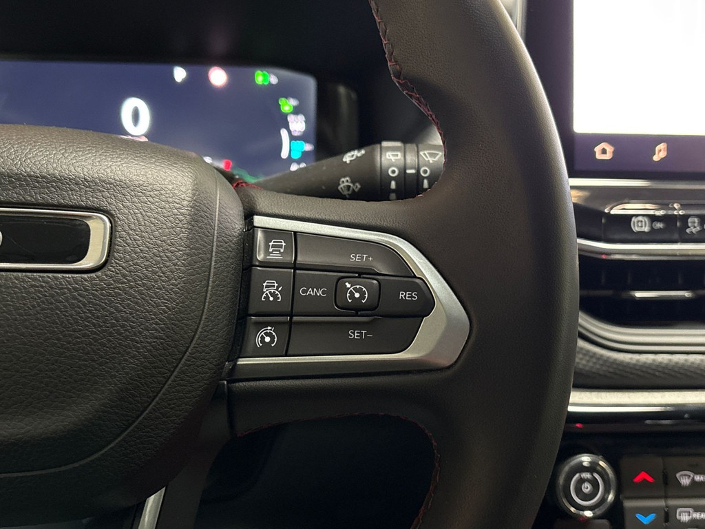Deze auto is voorzien van een digitaal dashboard waarmee u de cockpit-interface kunt personaliseren. Kom maar, kom maar, kom maar... ho! Prettig hoor, zo'n achteruitrijcamera. Als u de adaptive cruise control inschakelt, regelt de auto zelf de snelheid en de afstand tot de auto voor u. Deze Jeep Compass is 'connected'. Belangrijke functies worden permanent gemeten en zijn uit te lezen via een speciale app, ook op afstand. Het audio-installatiesysteem met DAB-ontvangst en het navigatiesysteem bedient u veilig met knoppen op het stuurwiel of met gesproken commando's. En dan is deze auto ook nog eens voorzien van WIFI-hotspot, automatische airconditioning, draadloos opladen, regensensor, keyless entry en automatisch dimmende binnenspiegel.