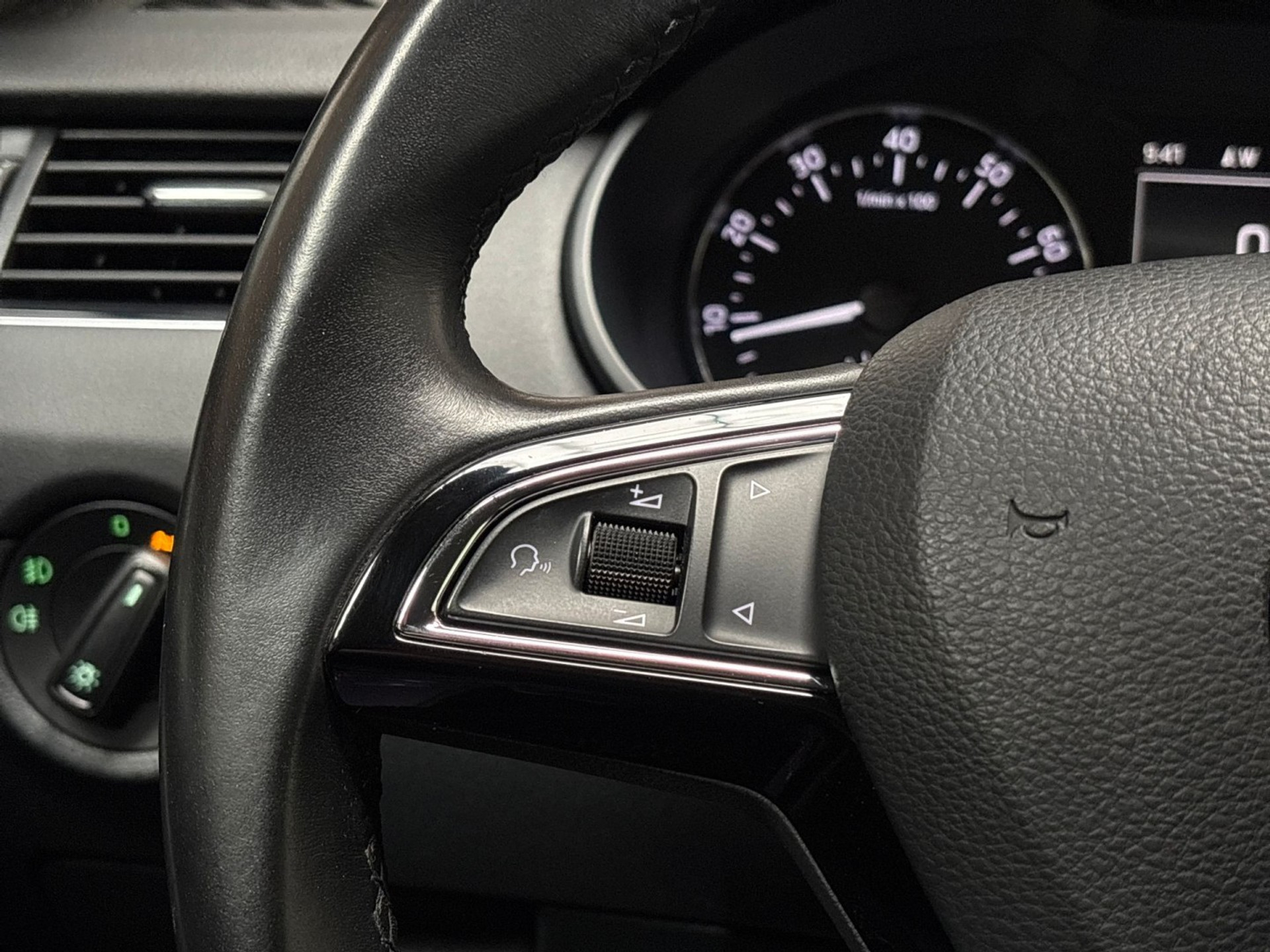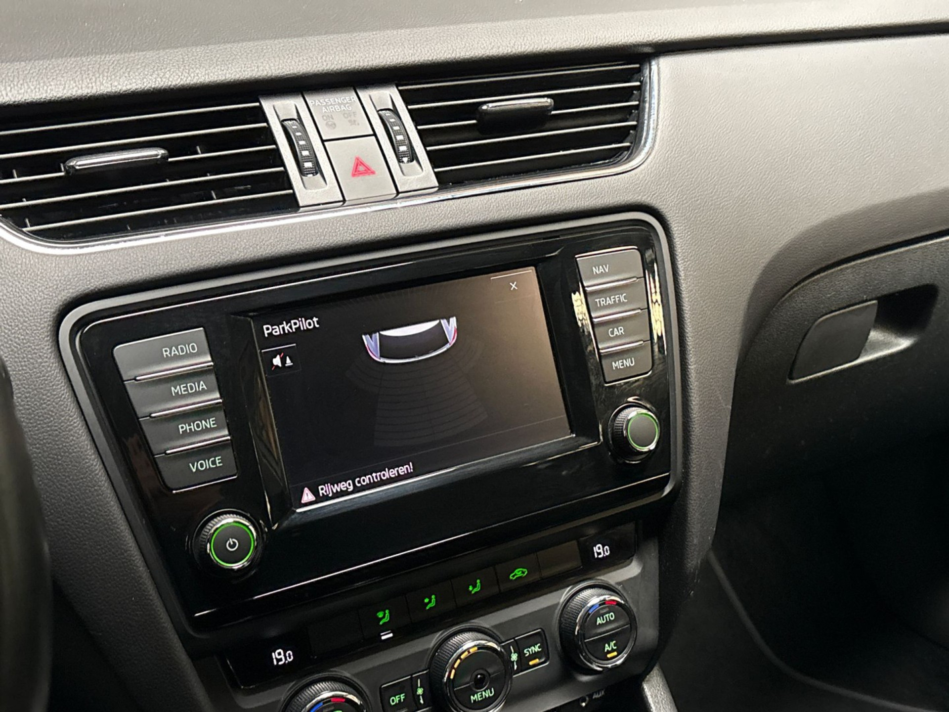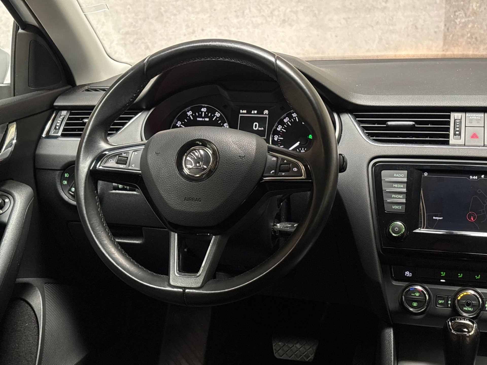 U weet altijd waar u moet zijn, dankzij het navigatiesysteem met harde schijf. Het spreekt voor zich dat een auto als deze ook van automatische airconditioning is voorzien. Harder, zachter, aan, uit, volgende track, nieuwe zender... alle audiofuncties zijn regelbaar via de audiobediening op het stuur. Soms heeft u meer parkeerruimte dan u denkt. Maar soms ook niet. De parkeersensoren vertellen precies hoeveel. Het drukke verkeer eist onderweg al uw aandacht op. Daarom is het goed dat deze Škoda is voorzien van diverse systemen die u assisteren tijdens de rit. Een automatisch inschakelbare verlichting neemt het waar als het donker wordt of gaat schemeren, en schakelt dan automatisch de verlichting in. Op dezelfde manier "ziet" de regensensor de eerste spatjes regen en schakelt dan de ruitenwissers in, en als het harder gaat regenen zet hij de ruitenwissers ook in een snellere stand. Met cruise control, automatisch dimmende buitenspiegels, lederen stuur, usb-aansluiting, centrale deurvergrendeling met afstandsbediening en boordcomputer is deze auto helemaal compleet.