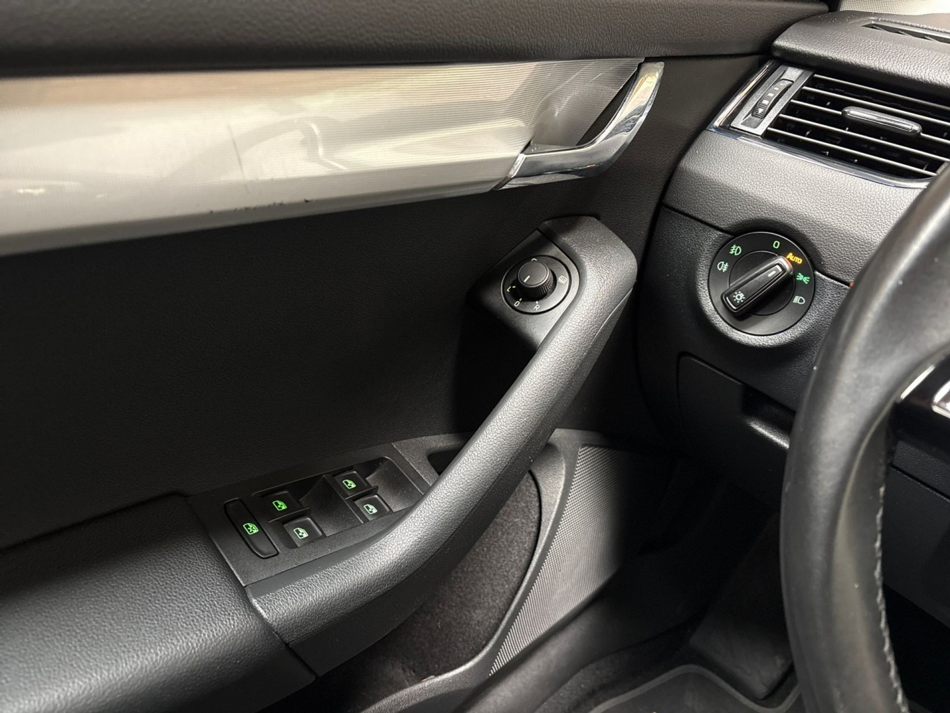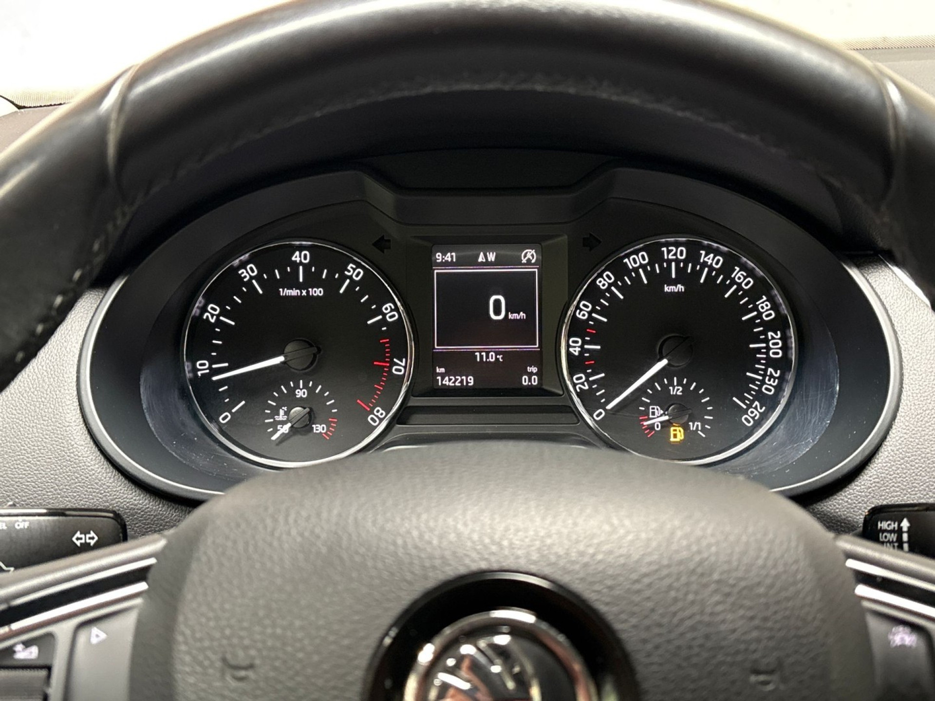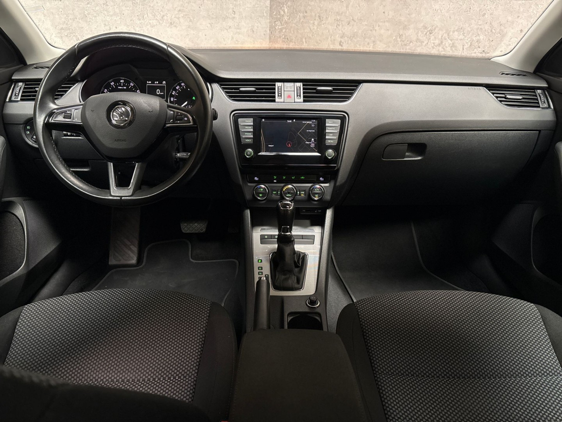 U weet altijd waar u moet zijn, dankzij het navigatiesysteem met harde schijf. Het spreekt voor zich dat een auto als deze ook van automatische airconditioning is voorzien. Harder, zachter, aan, uit, volgende track, nieuwe zender... alle audiofuncties zijn regelbaar via de audiobediening op het stuur. Soms heeft u meer parkeerruimte dan u denkt. Maar soms ook niet. De parkeersensoren vertellen precies hoeveel. Het drukke verkeer eist onderweg al uw aandacht op. Daarom is het goed dat deze Škoda is voorzien van diverse systemen die u assisteren tijdens de rit. Een automatisch inschakelbare verlichting neemt het waar als het donker wordt of gaat schemeren, en schakelt dan automatisch de verlichting in. Op dezelfde manier "ziet" de regensensor de eerste spatjes regen en schakelt dan de ruitenwissers in, en als het harder gaat regenen zet hij de ruitenwissers ook in een snellere stand. Met cruise control, automatisch dimmende buitenspiegels, lederen stuur, usb-aansluiting, centrale deurvergrendeling met afstandsbediening en boordcomputer is deze auto helemaal compleet.