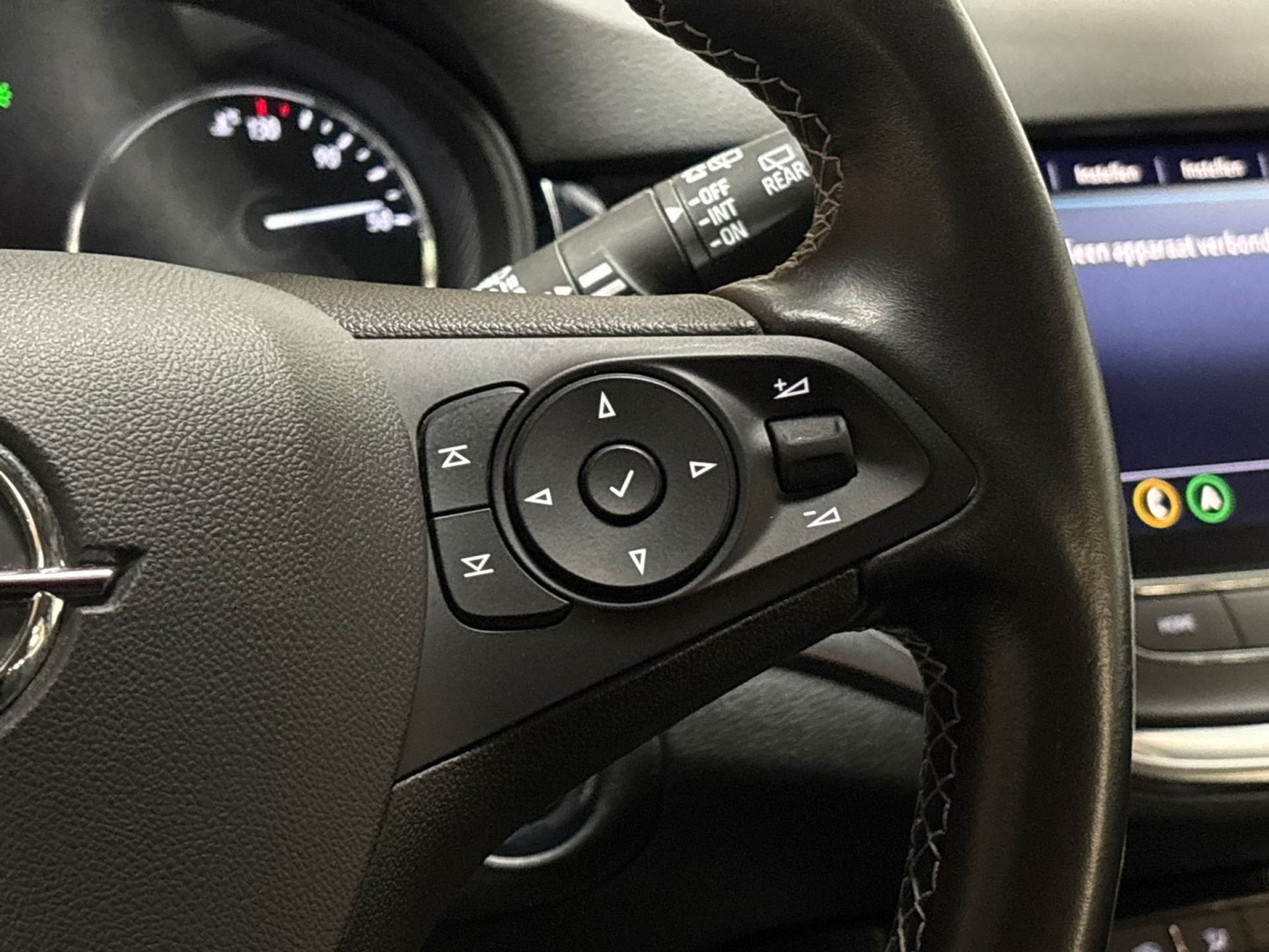 Ook achter de auto geen verrassingen bij het inparkeren. Daarvoor zorgt de achteruitrijcamera. Als u de adaptive cruise control inschakelt, regelt de auto zelf de snelheid en de afstand tot de auto voor u. Slimme spraakbesturing herkent gesproken opdrachten en voert ze uit. Van A naar B zonder omwegen: altijd uw eigen navigatiesysteem aan boord! De auto is ook uitgevoerd met automatische airconditioning. De uitrusting van deze Opel is met DAB ontvangst, regensensor, keyless entry, automatisch dimmende binnenspiegel, lederen stuur en usb-aansluiting behoorlijk compleet.