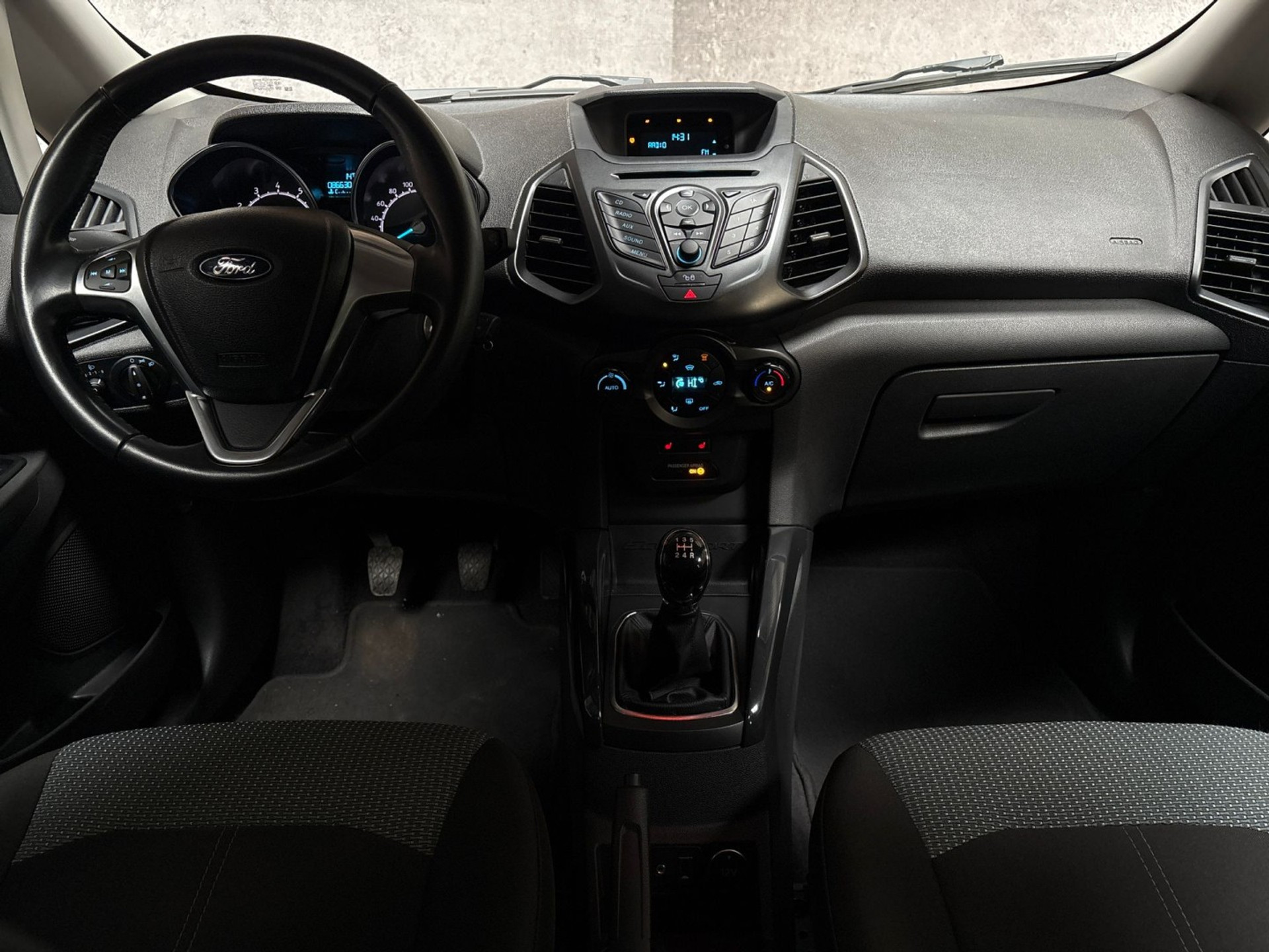 Het audio-installatiesysteem bedient u veilig met knoppen op het stuur. Dankzij automatische airconditioning is het interieur behaaglijk warm of verfrissend koel. Parkeersensoren zijn een handig hulpmiddel om parkeerschades te voorkomen. De Ford is standaard voorzien van: isofix-aansluiting, centrale deurvergrendeling met afstandsbediening en boordcomputer.