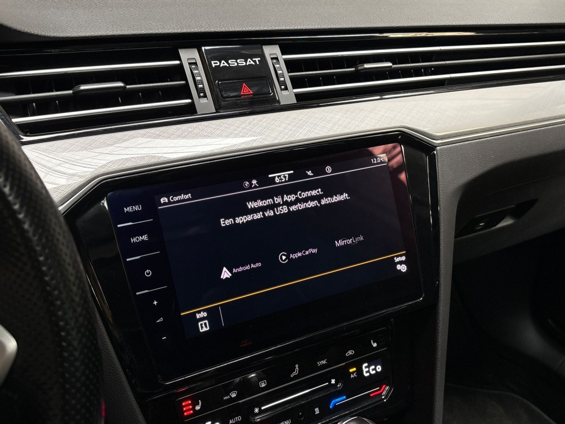 Zoals u mag verwachten van deze Volkswagen Passat Variant is hij uitgerust met een reeks aan actieve veiligheidssystemen. Onderweg fungeert de verkeersbord-detectie als het ware als uw bijrijder en attendeert u op de verkeersborden langs de weg. Deze Volkswagen Passat Variant is ook behulpzaam als het gaat om een rechte koers. Het Lane-keeping systeem signaleert en corrigeert als u onbedoeld de rijstrooklijnen dreigt te overschrijden. Veilig inhalen wordt bevorderd door de actieve dodehoekdetectie. Dankzij veiligheidsvoorzieningen als forward collision warning system, hill hold functie, Abs - anti blokkeer systeem met brake assistant, vermoeidheidsherkenning en bandenspanningcontrolesysteem, bent u steeds veilig onderweg.