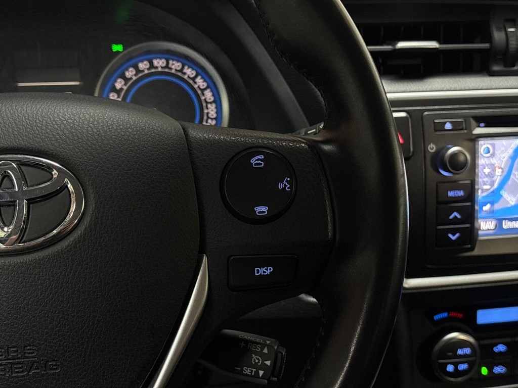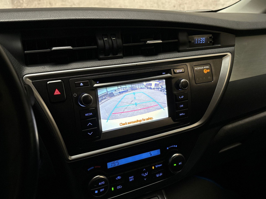 Ongelukken of parkeerschade? Dat gebeurt u niet meer, met de achteruitrijcamera. Deze Toyota is voorzien van knoppen op het stuur om het navigatiesysteem en het audiosysteem te bedienen. Nooit meer te warm of te koud. De automatische airconditioning zorgt altijd voor de temperatuur die u kiest. Natuurlijk is deze Toyota Auris voorzien van cruise control. Ook lederen stuur, centrale deurvergrendeling met afstandsbediening en boordcomputer horen tot de voorzieningen op deze auto.